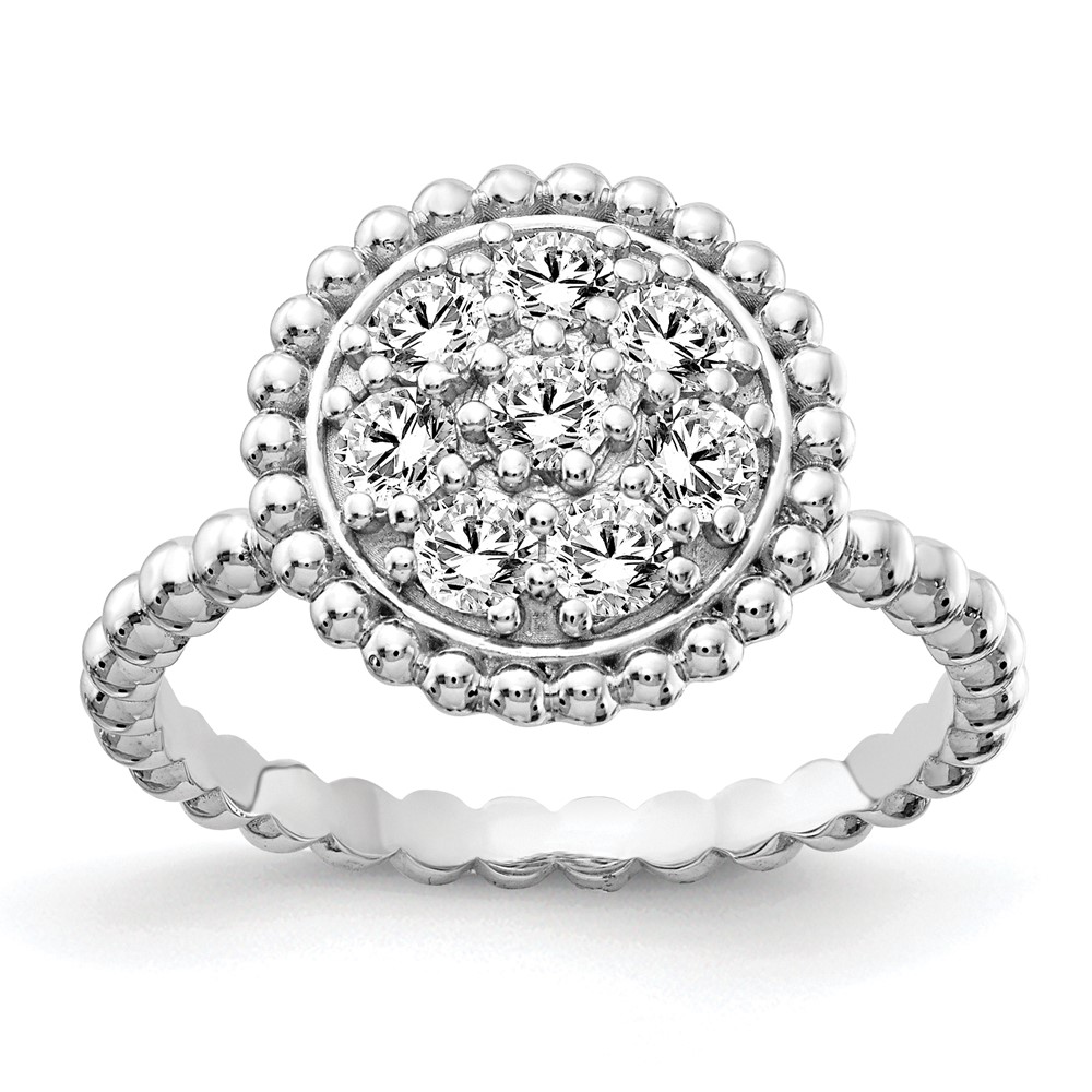 Sterling Shimmer Sterling Silver Rhodium-plated 8 Stone CZ Round Beaded Ring