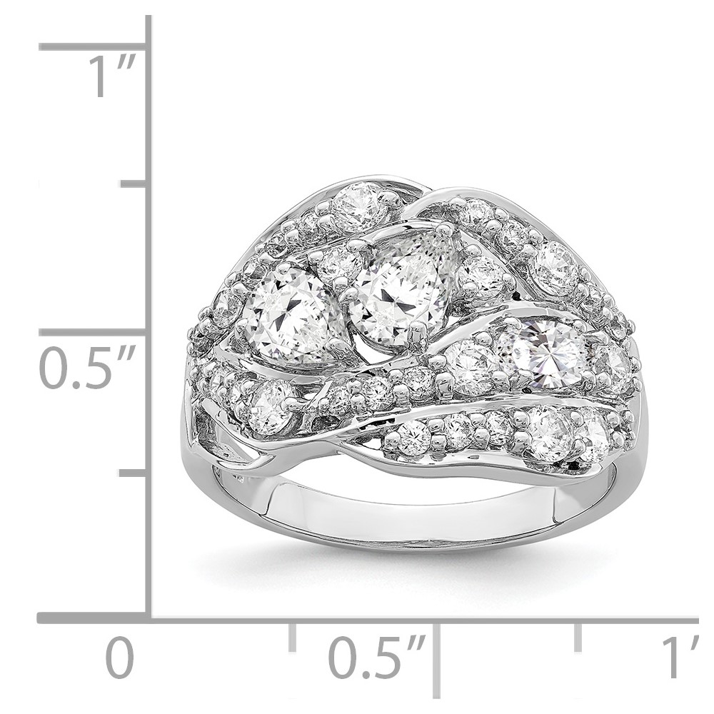 Sterling Silver Rhodium-plated Pear CZ Fancy Ring