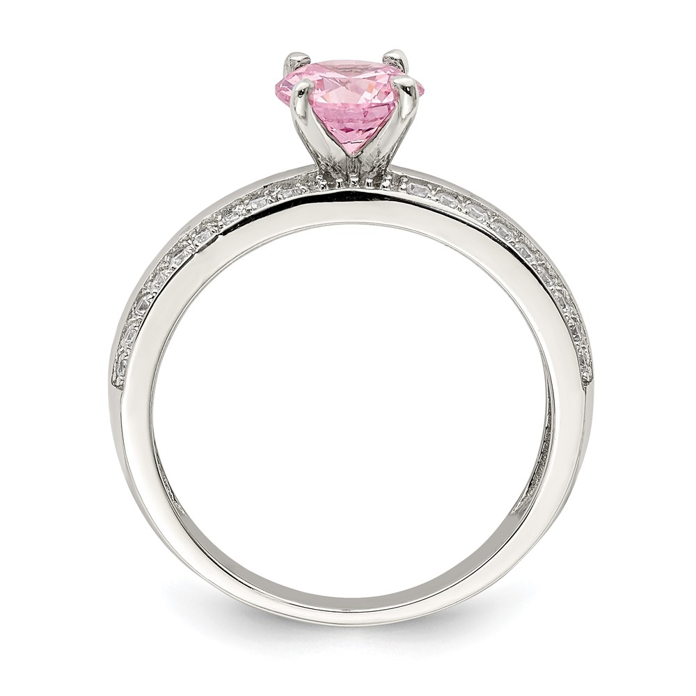 Sterling Silver Rhodium-plated Pink and Clear CZ Ring