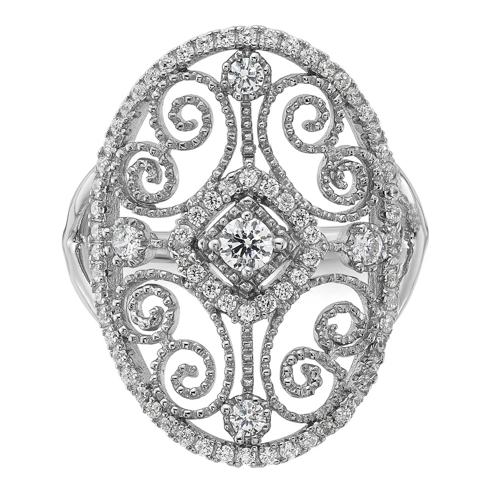 Sterling Silver Rhodium-plated CZ Filigree Oval Ring