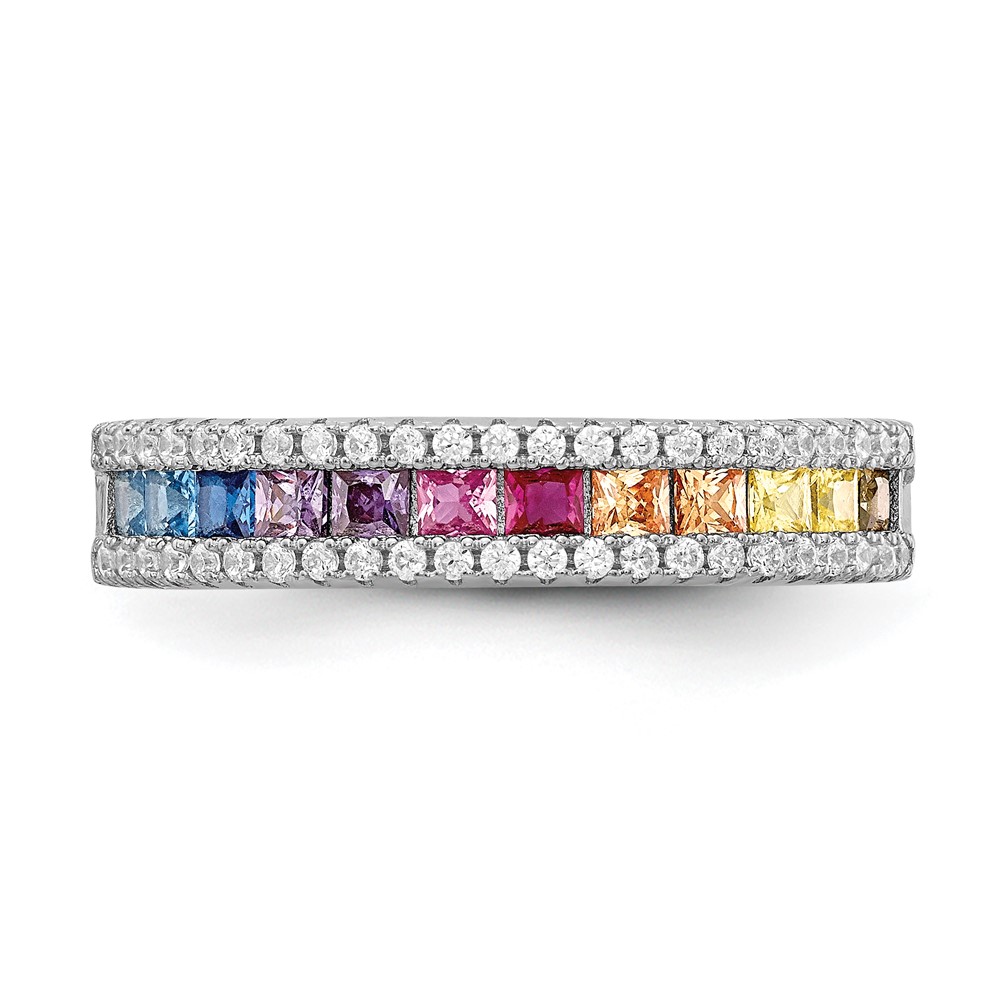 Prizma Sterling Silver Rhodium-plated Princess White and Colorful Channel-Set CZ Ring