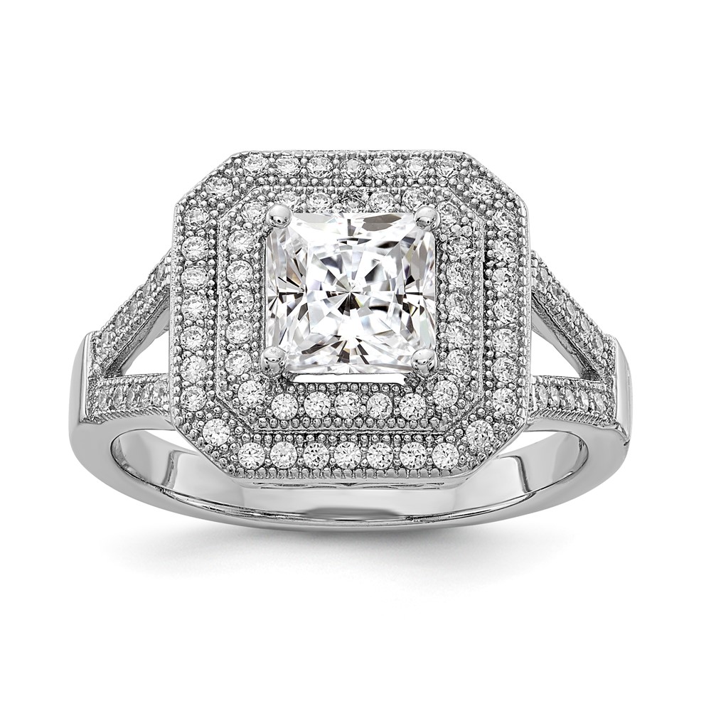 Sterling Silver Rhodium-plated CZ Ring