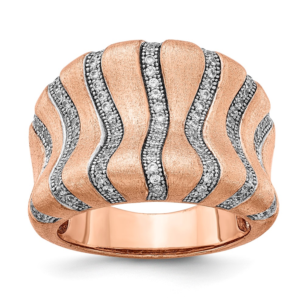 Sterling Silver Rhodium-plated & Rose-tone Brushed CZ Ring