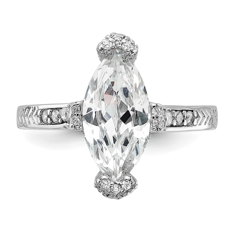 Sterling Silver Rhodium-plated Marquis Shape Center CZ Ring