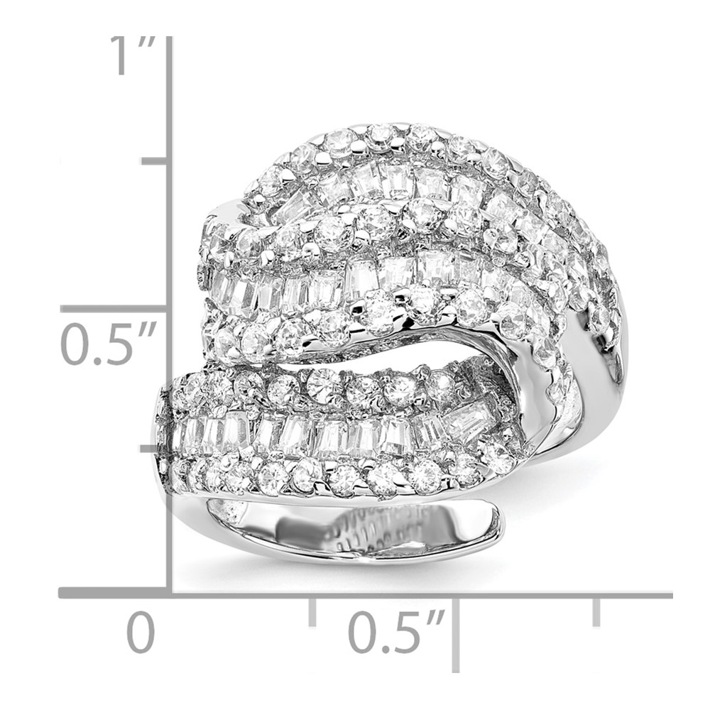 SS RHODIUM PLATE WHITE CZ RIGHT HAND RING WITH TAPER BAGUETTES-5