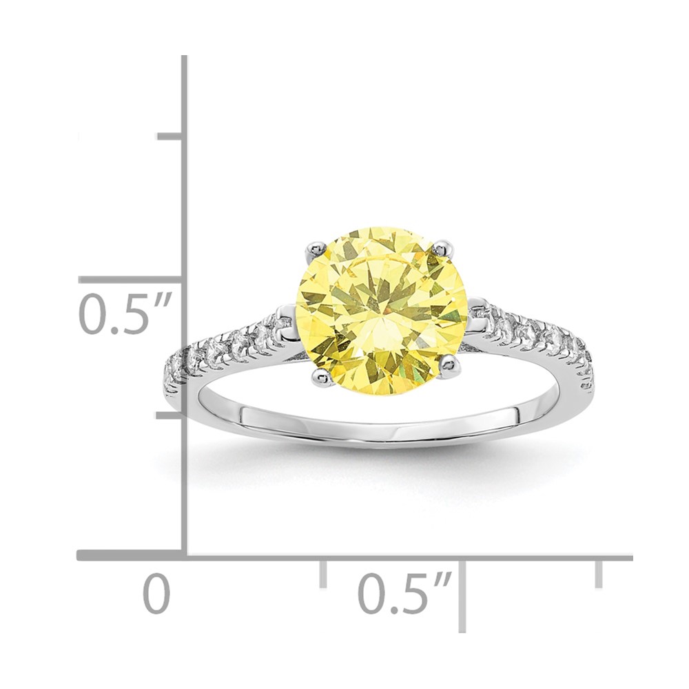 Sterling Silver Rhodium-plated Clear CZ and Yellow Center CZ Ring