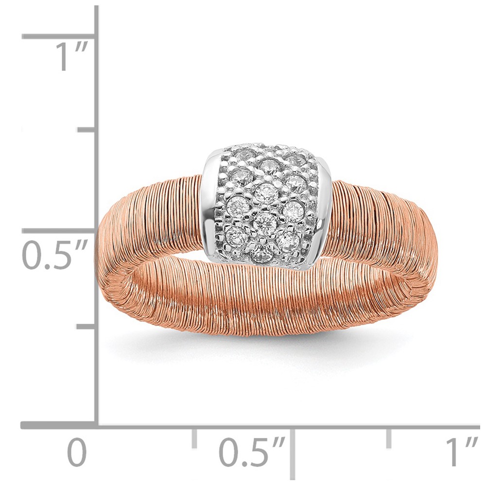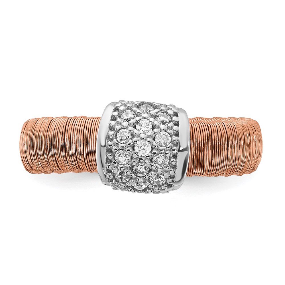 Sterling Silver Rose-tone Wire Wrapped CZ Ring