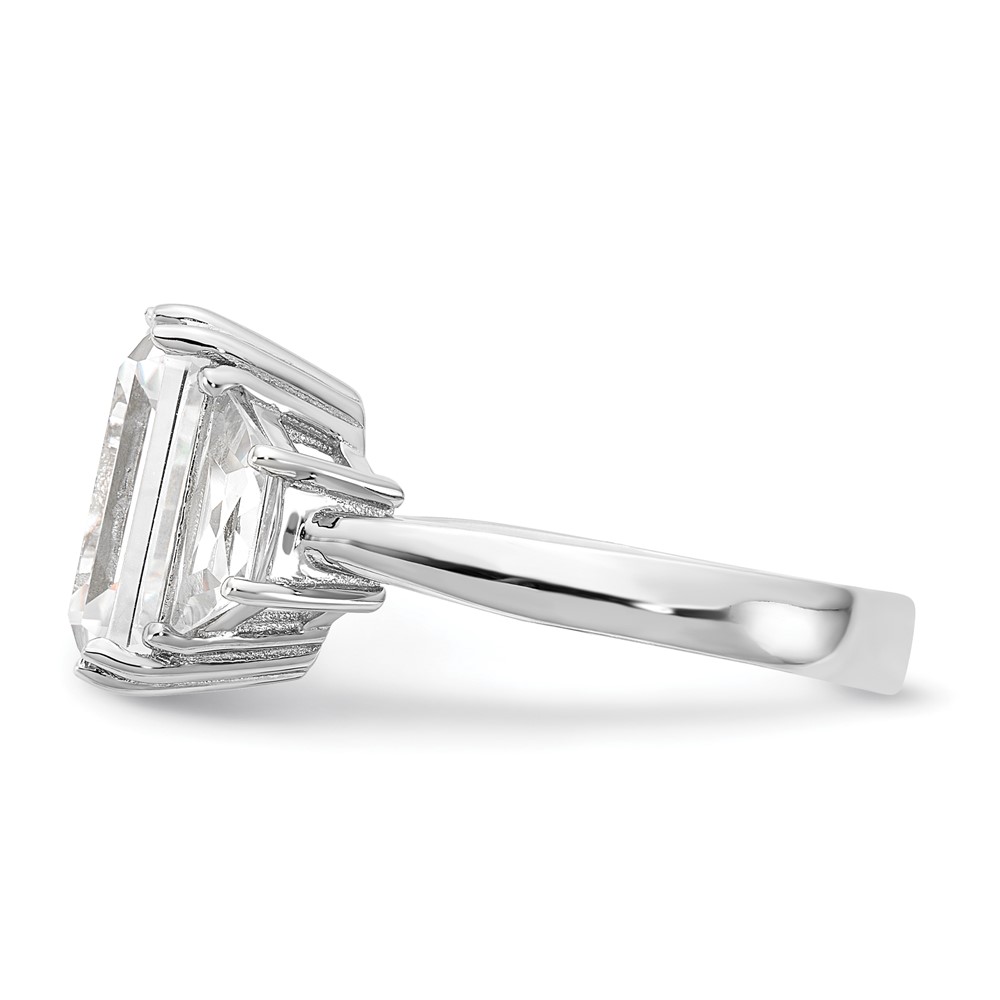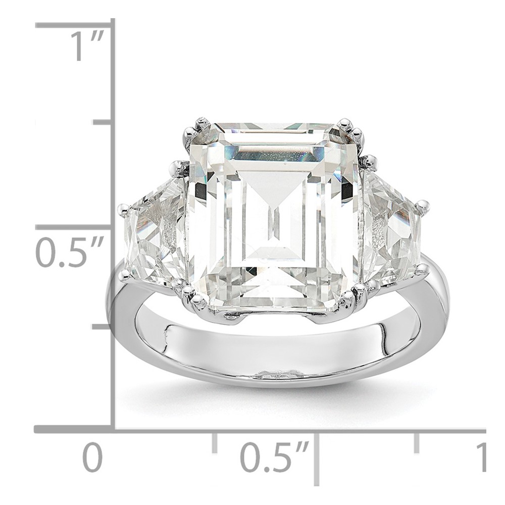 Cheryl M Sterling Silver Rhodium-plated Fancy Emerald-cut and Brilliant-cut CZ 3 Stone Ring
