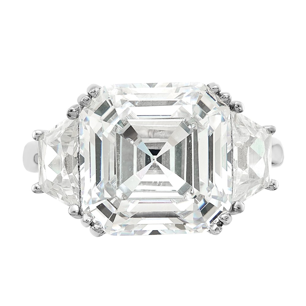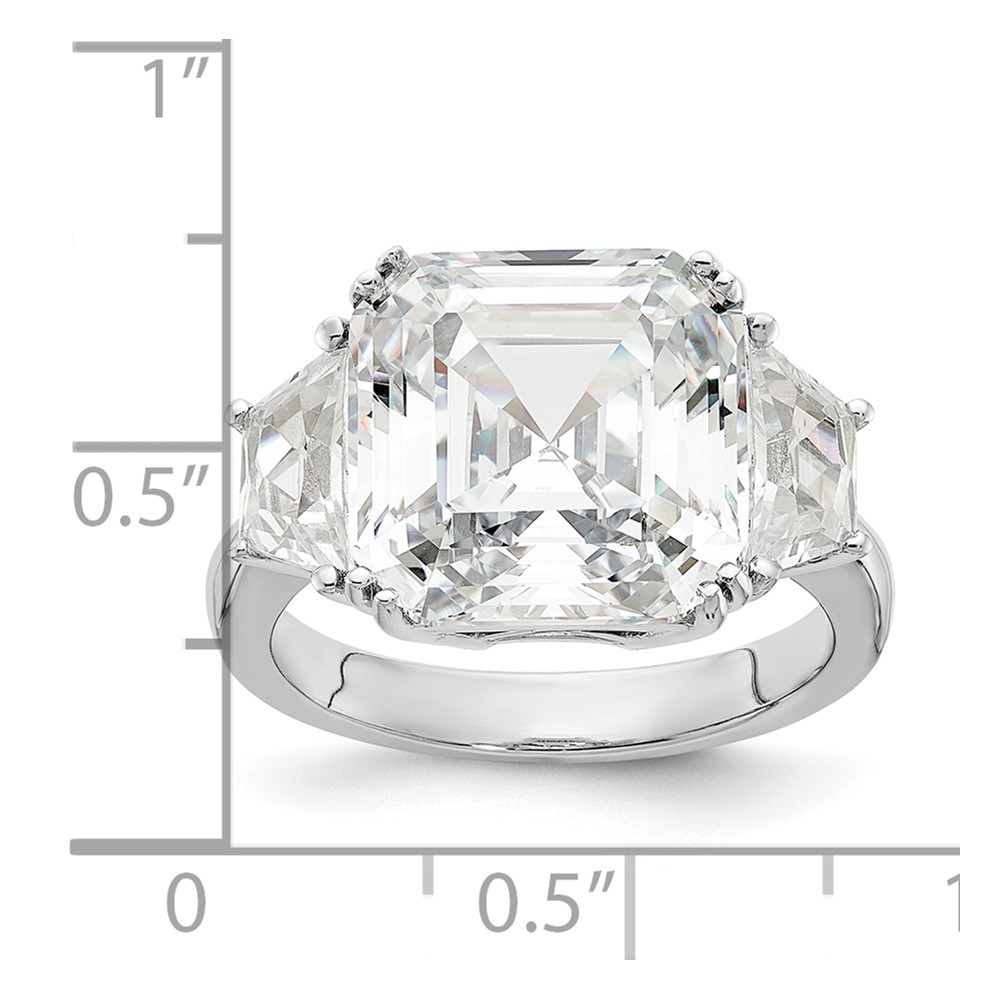 Cheryl M Sterling Silver Rhodium-plated Asscher-cut and Brilliant-cut CZ 3 Stone Ring