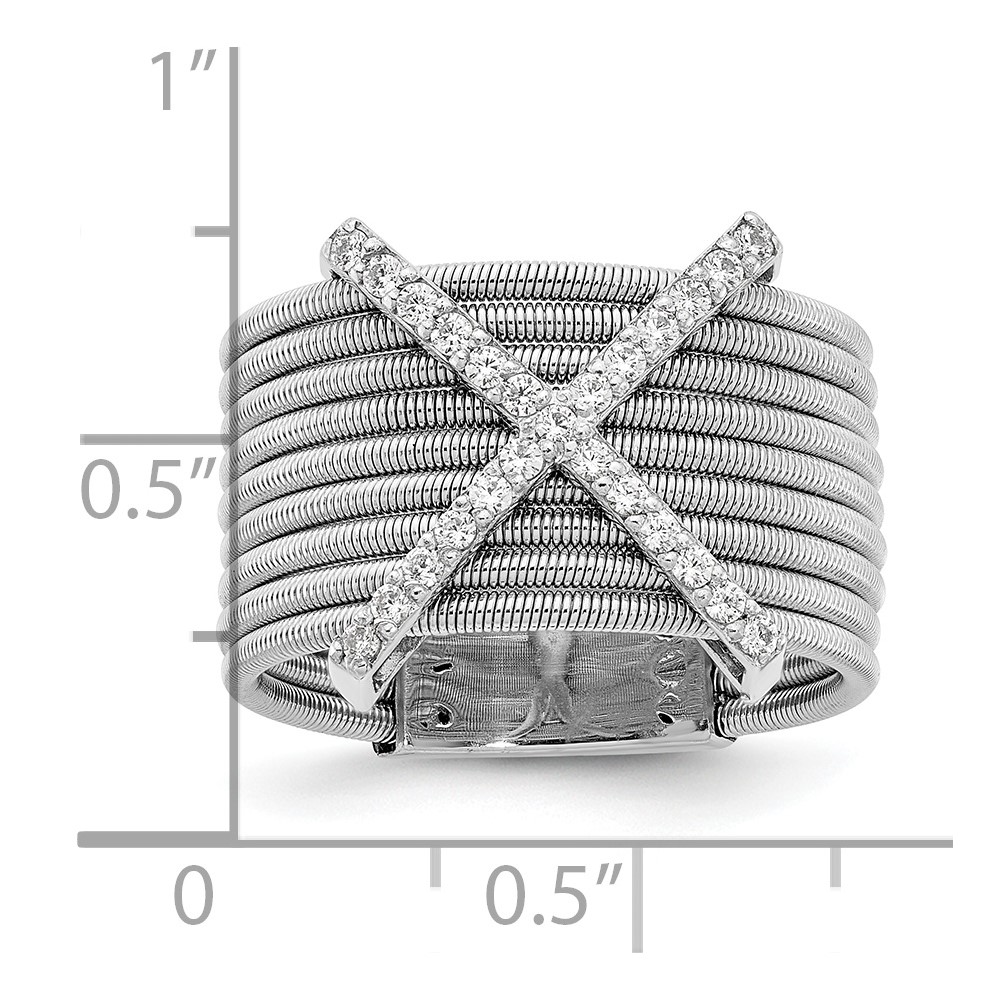 Cheryl M Sterling Silver Rhodium-plated Brilliant-cut CZ Textured Multi-band Ring