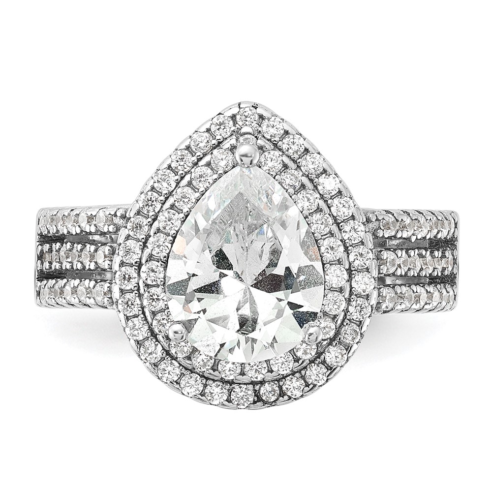 Cheryl M Sterling Silver Rhodium-plated Brilliant-cut Pear CZ Double Halo Ring