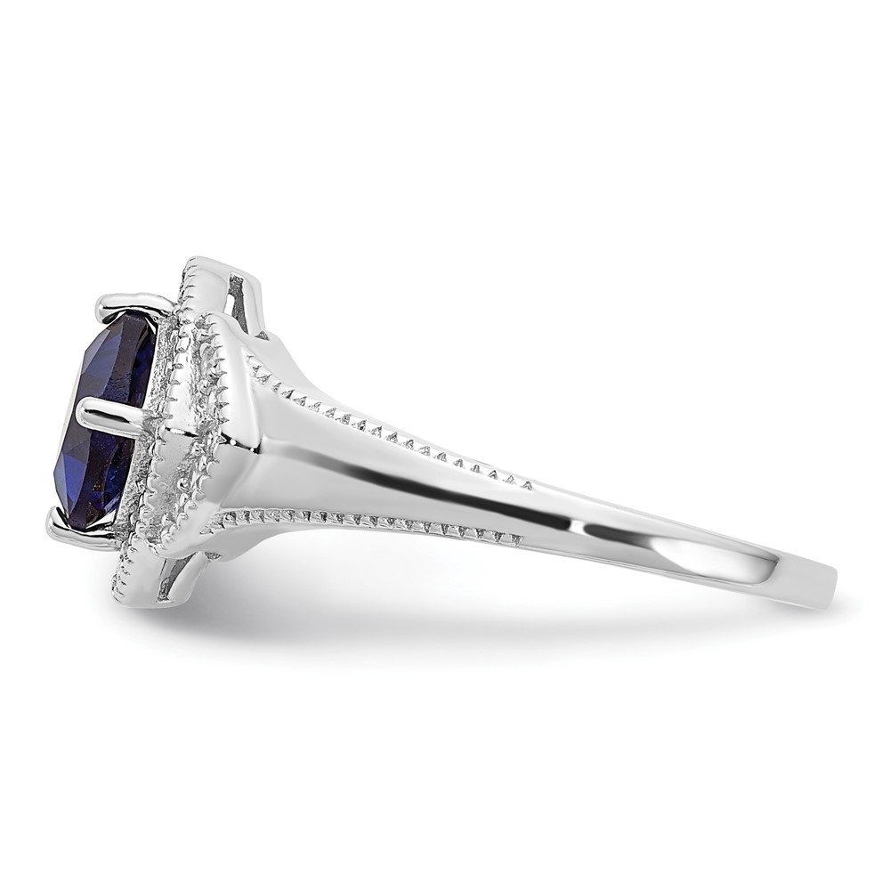 Cheryl M Sterling Silver Rhodium-plated Fancy Cushion-cut Blue Glass and Brilliant-cut White CZ Ring