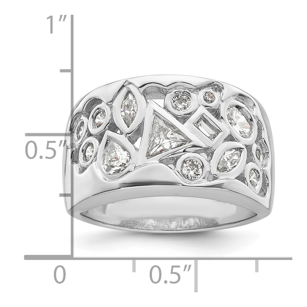 Sterling Silver Rhodium-plated Multi-shaped CZ Ring