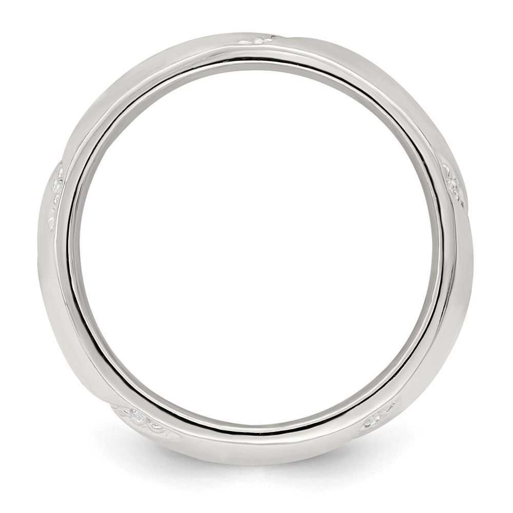 Sterling Silver CZ Slanted Lines Ring