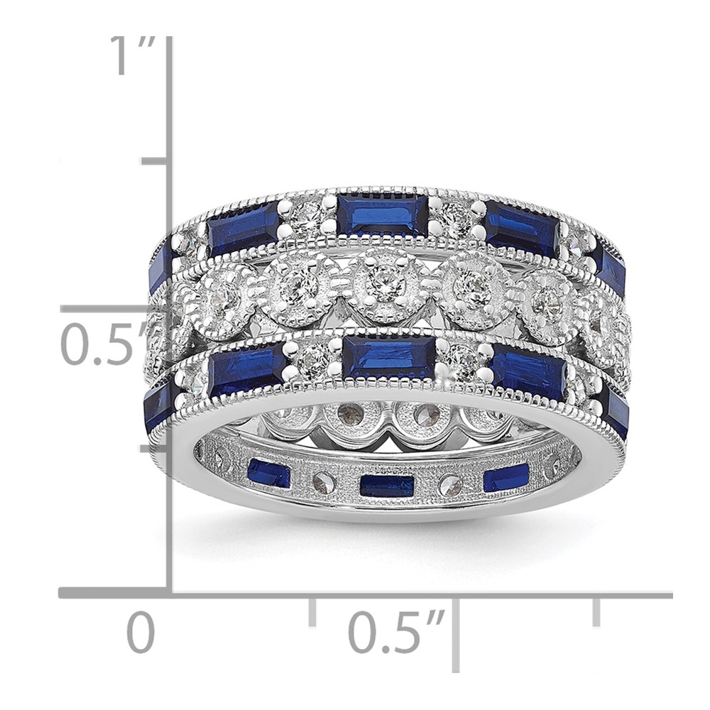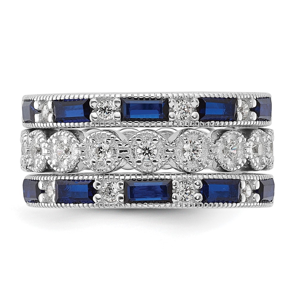 Cheryl M Sterling Silver Rhodium-plated Emerald-cut & Brilliant-cut Blue and White CZ Three Piece Eternity Ring Set