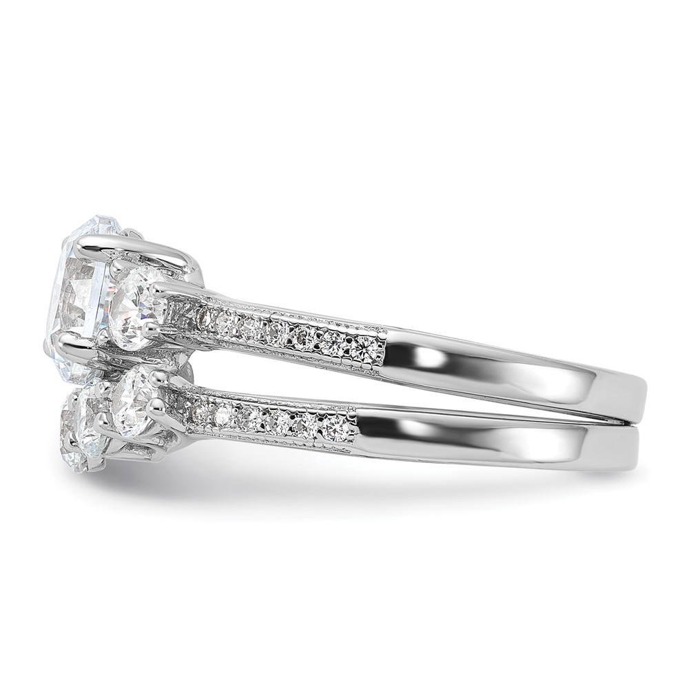 Sterling Silver Rhodium-plated CZ Engagement Ring and Band Set