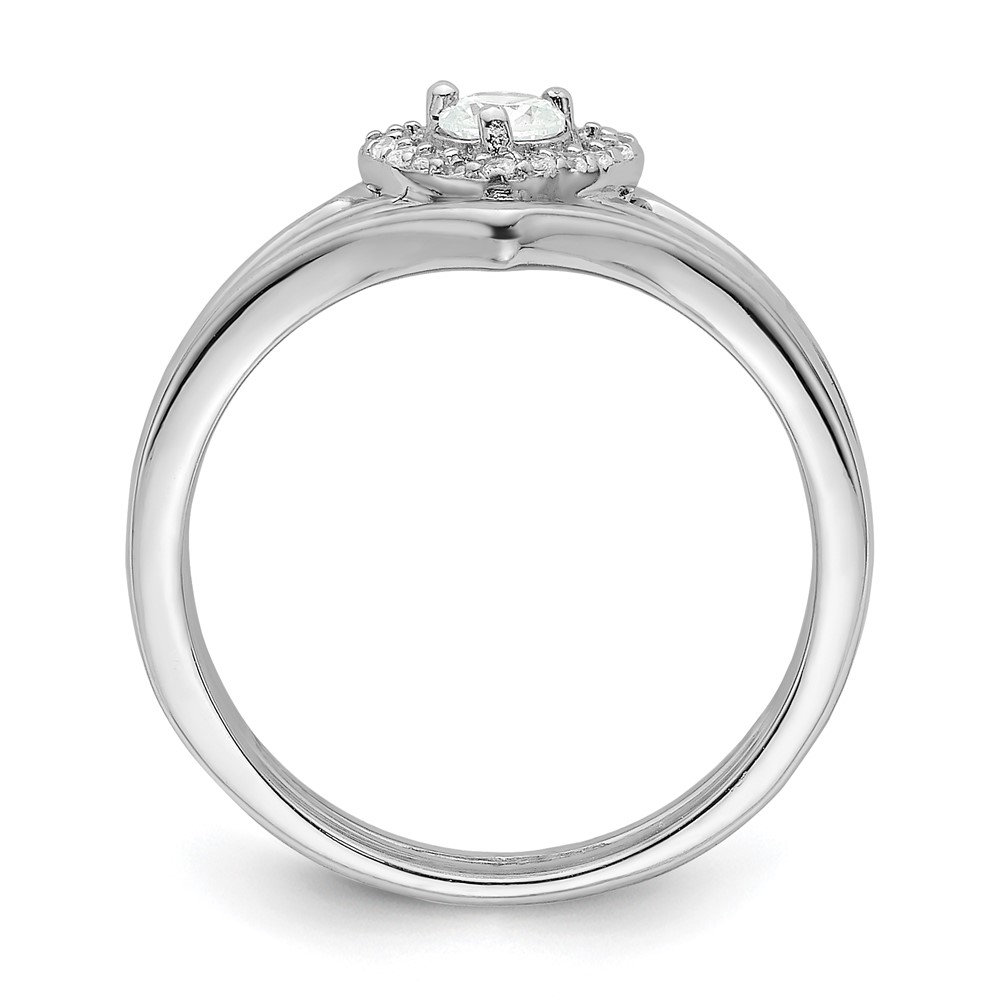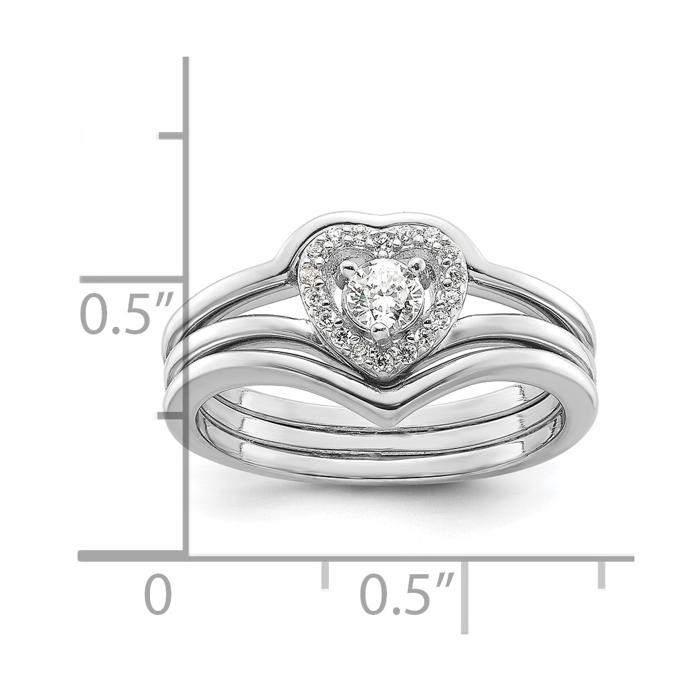 Sterling Silver Rhodium-plated CZ Heart and Bands Three Ring Set