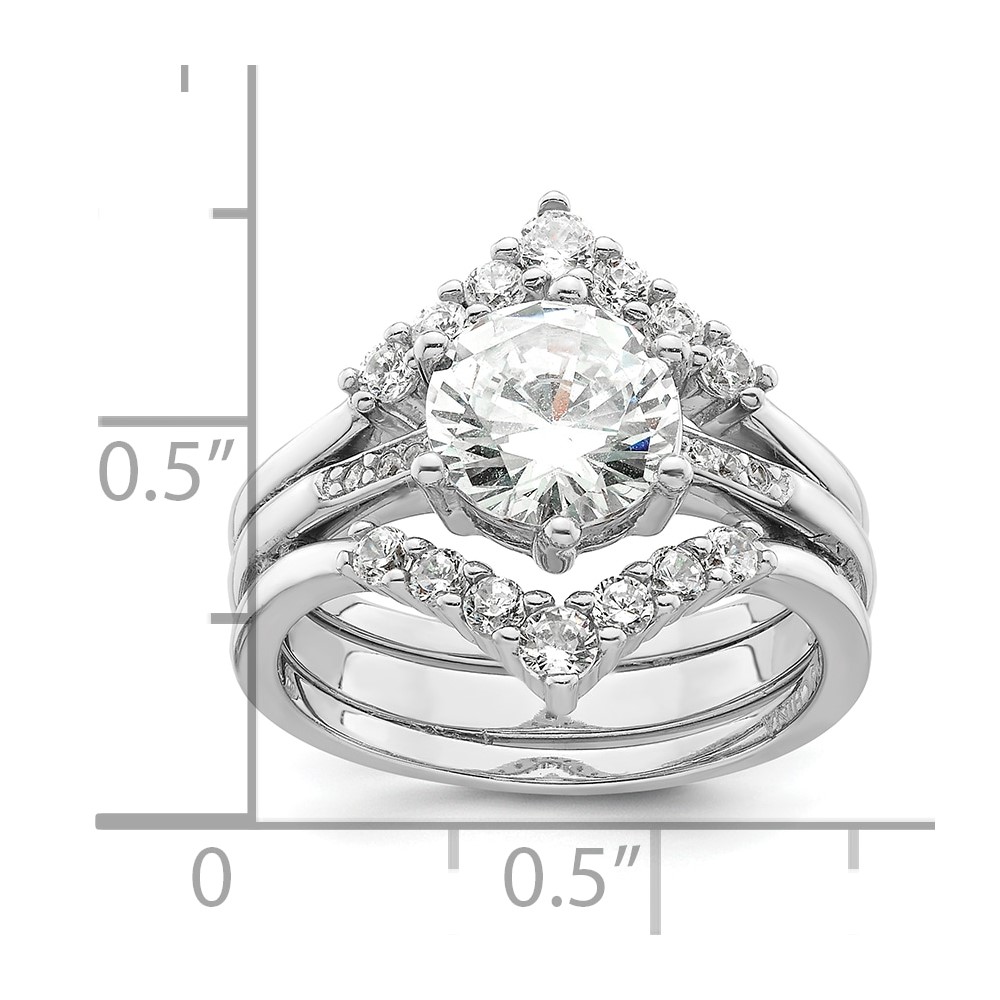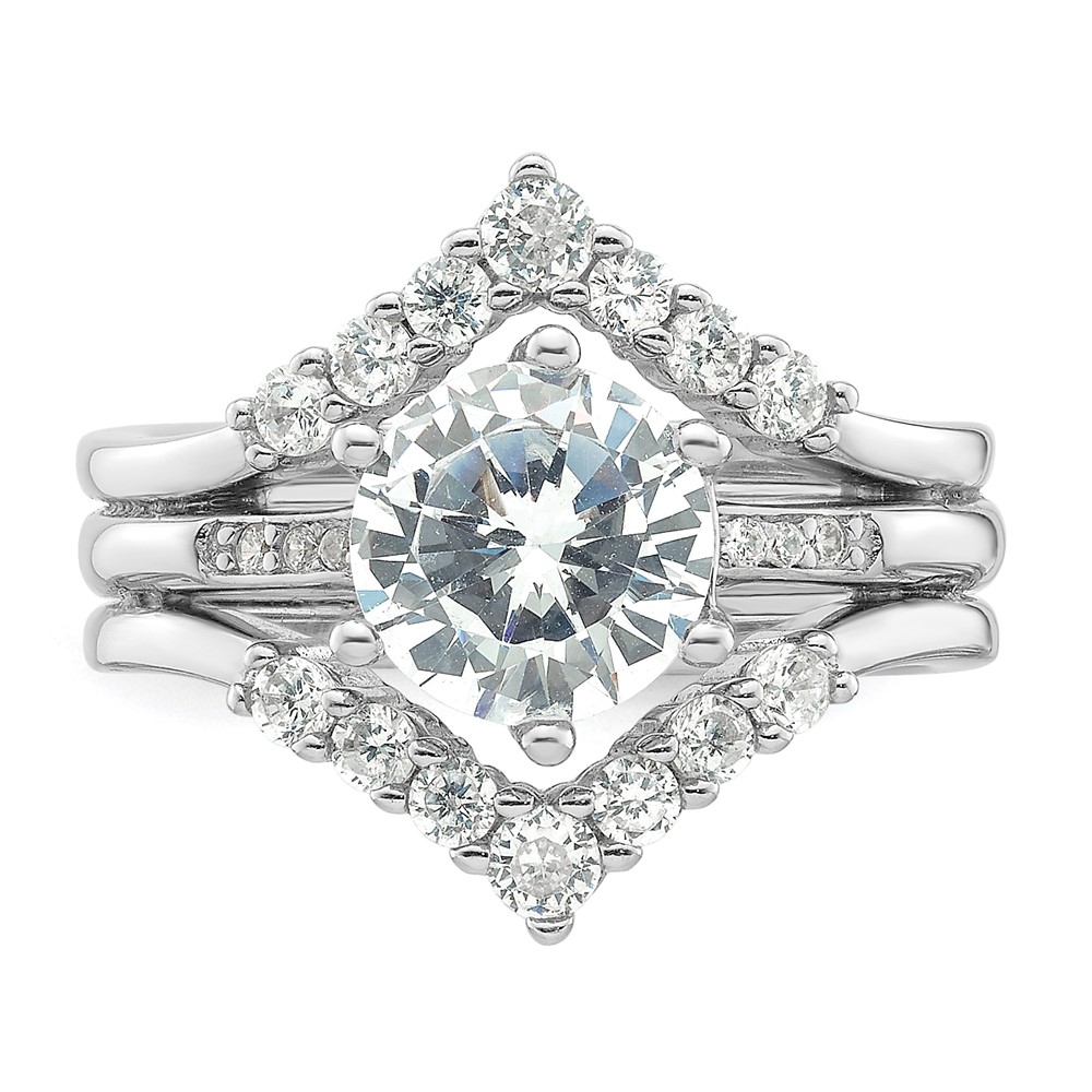Sterling Silver Rhodium-plated CZ Three Ring Set