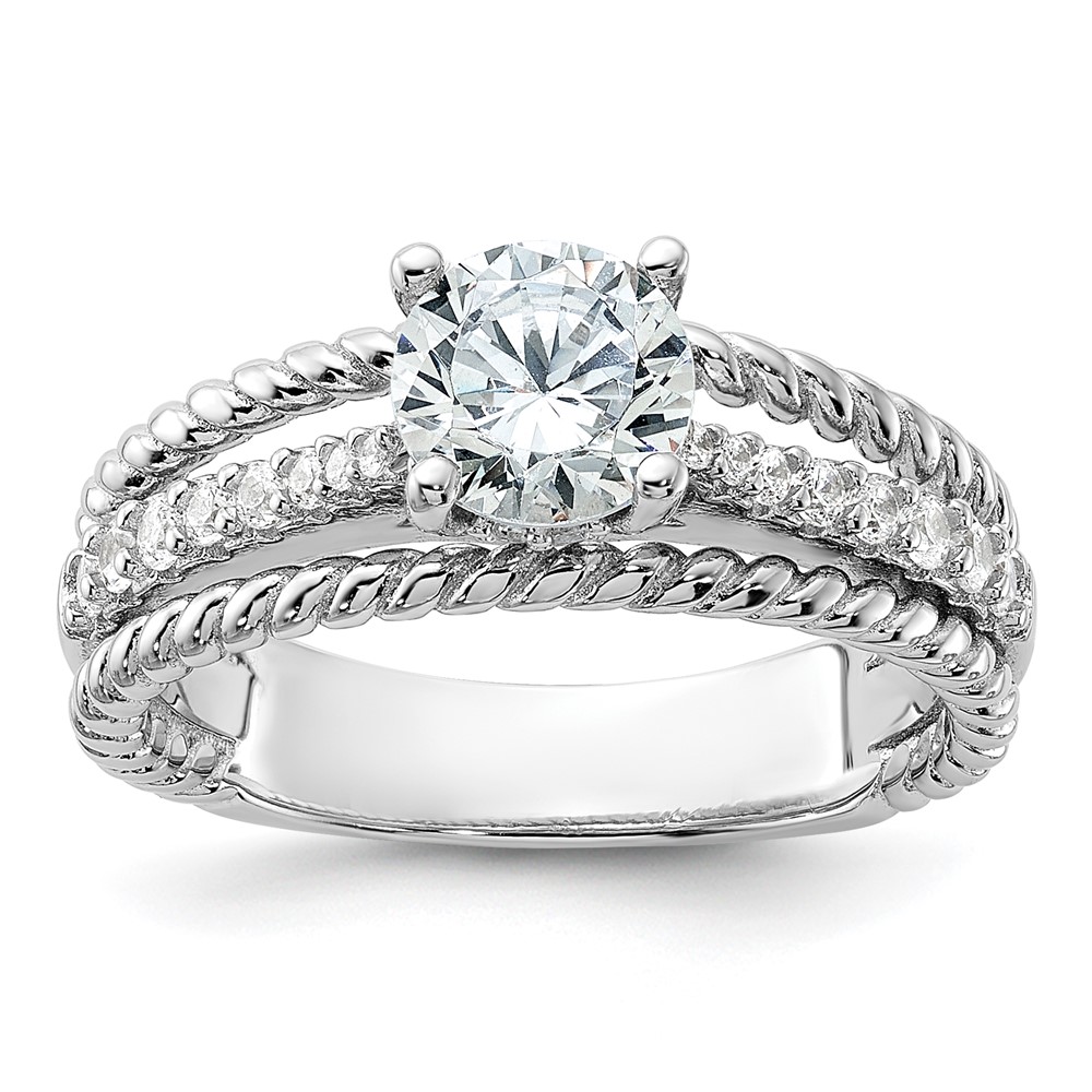 Sterling Silver Rhodium-plated Fancy Engagement CZ Ring