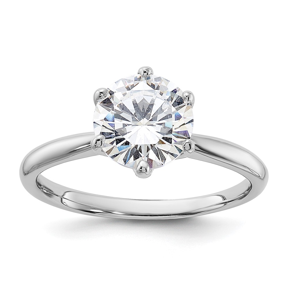 Sterling Silver Rhodium-plated 9mm CZ 6 Prong Solitaire Ring