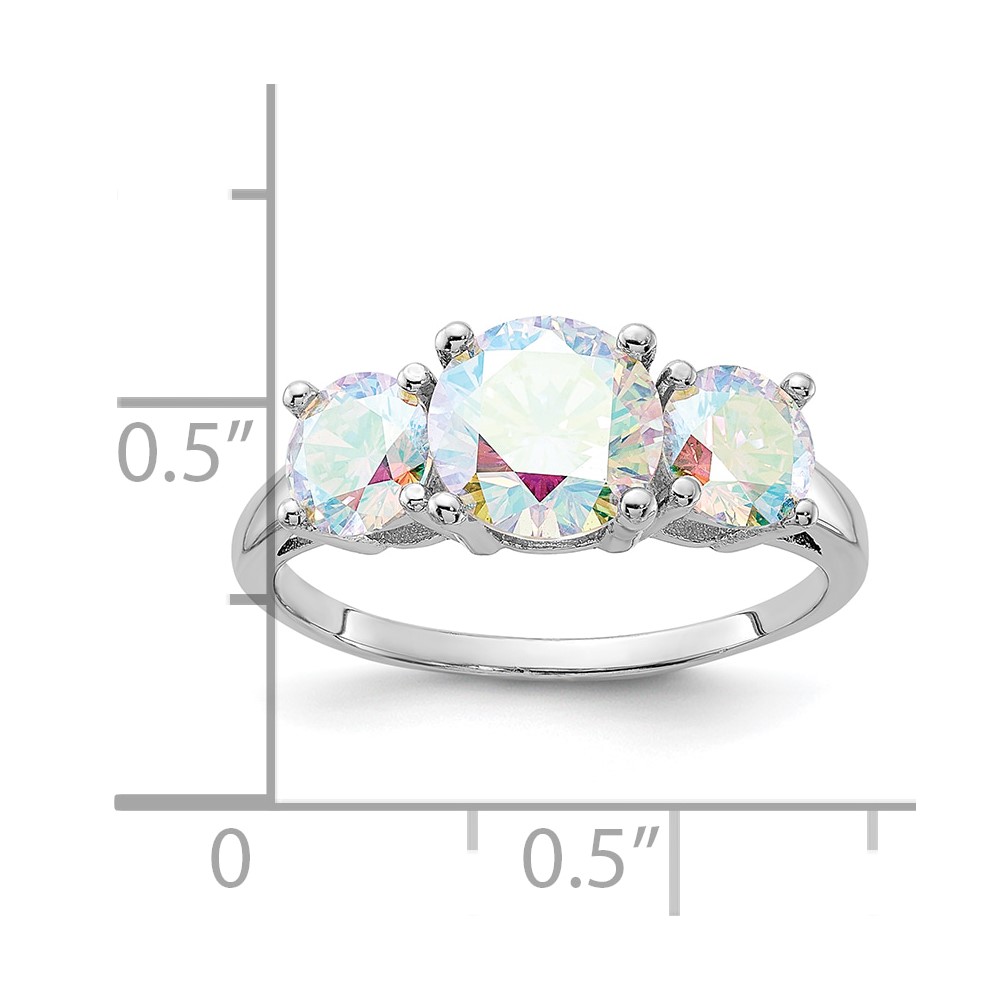 Sterling Silver Rhodium-plated Iridescent CZ 3-Stone Ring