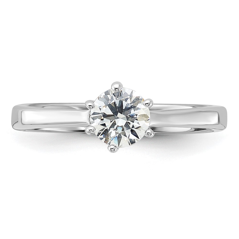 Sterling Silver Rhodium-plated 5mm Round CZ 6-prong Engagement Ring
