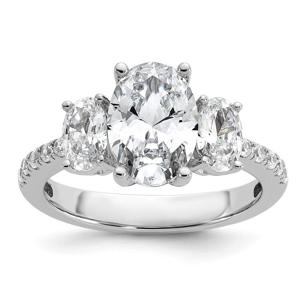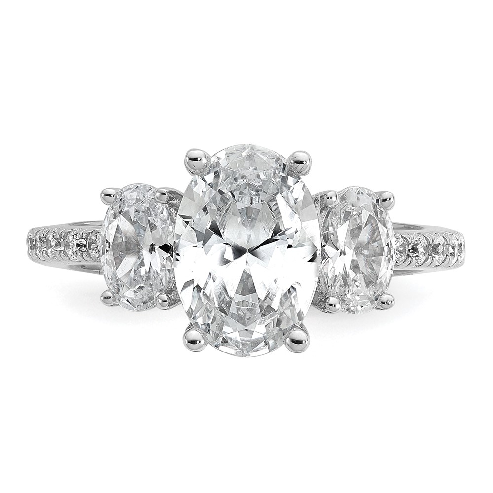 Cheryl M Sterling Silver Rhodium-plated Polished Fancy 3-Stone Oval CZ Ring