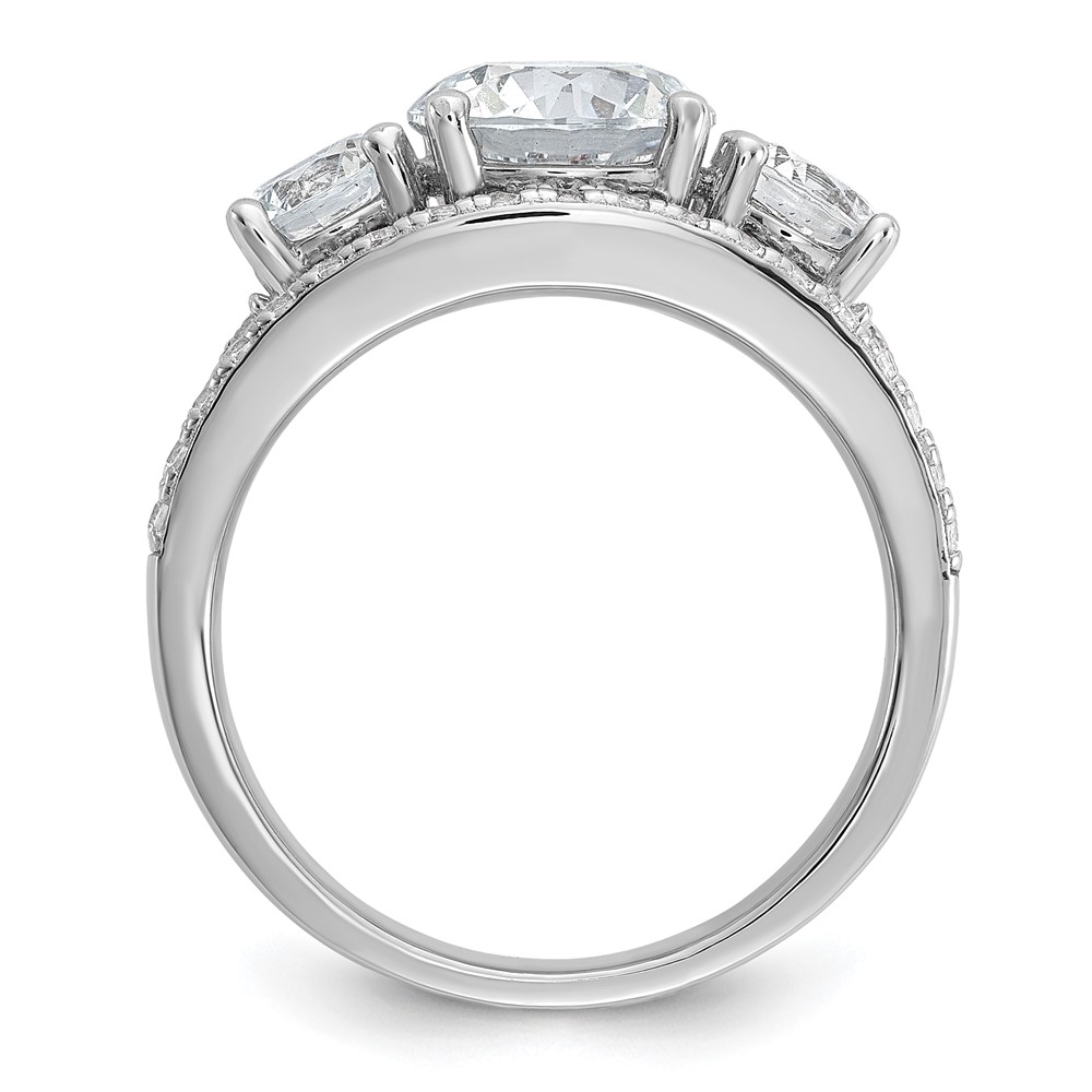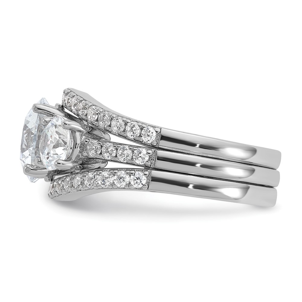 Cheryl M Sterling Silver Rhodium-plated Polished 3-Stone CZ Ring with 2 Bands Ring Set