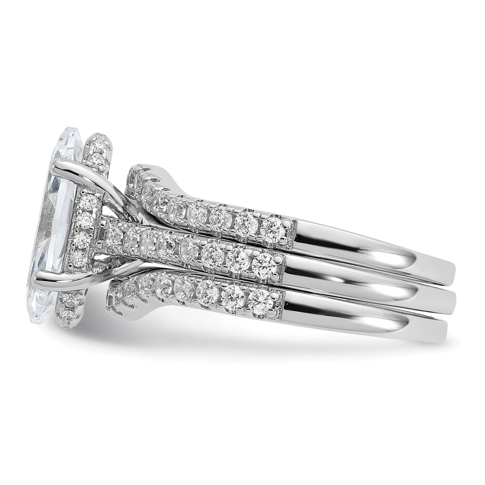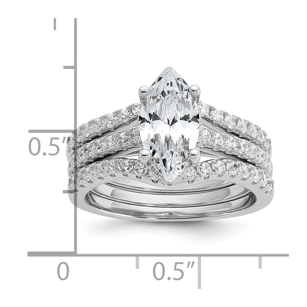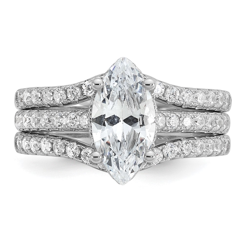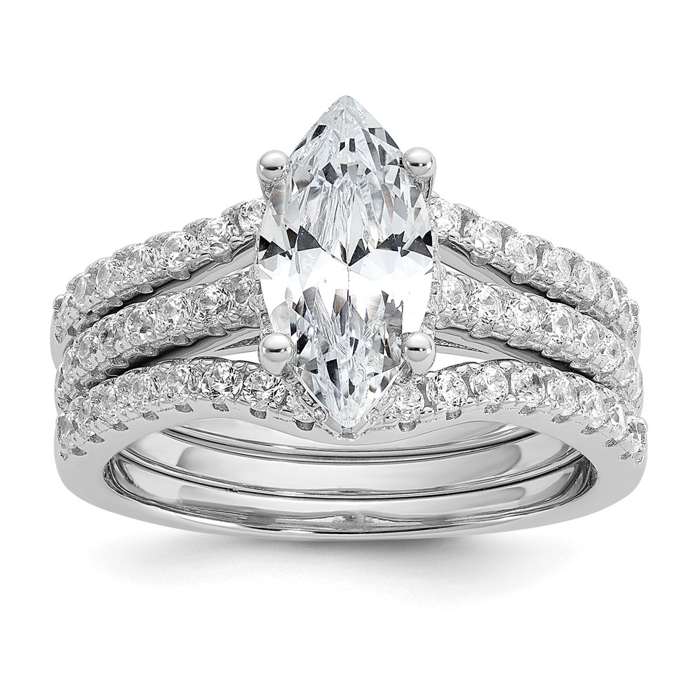 Cheryl M Sterling Silver Rhodium-plated Polished Marquise CZ with Two Bands Ring Set