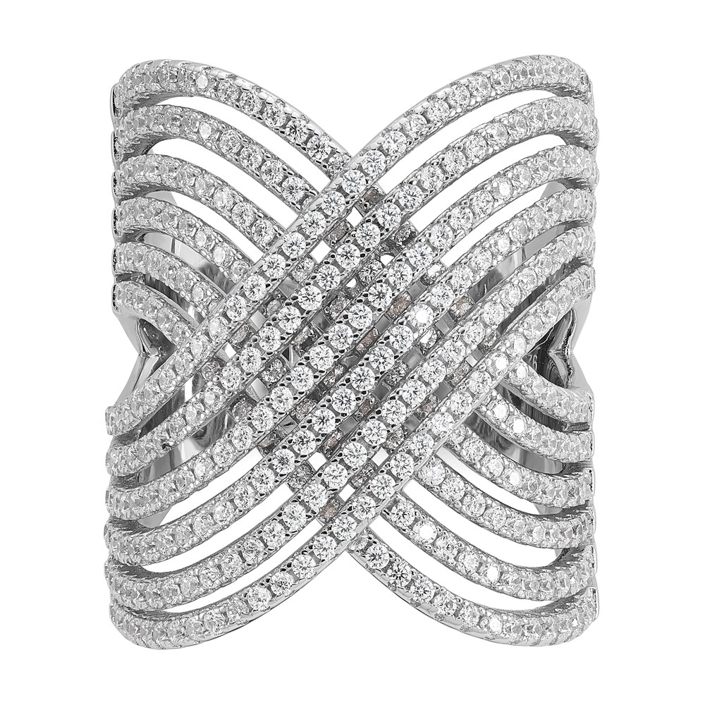 Cheryl M Sterling Silver Rhodium-plated Polished Fancy CZ X Ring
