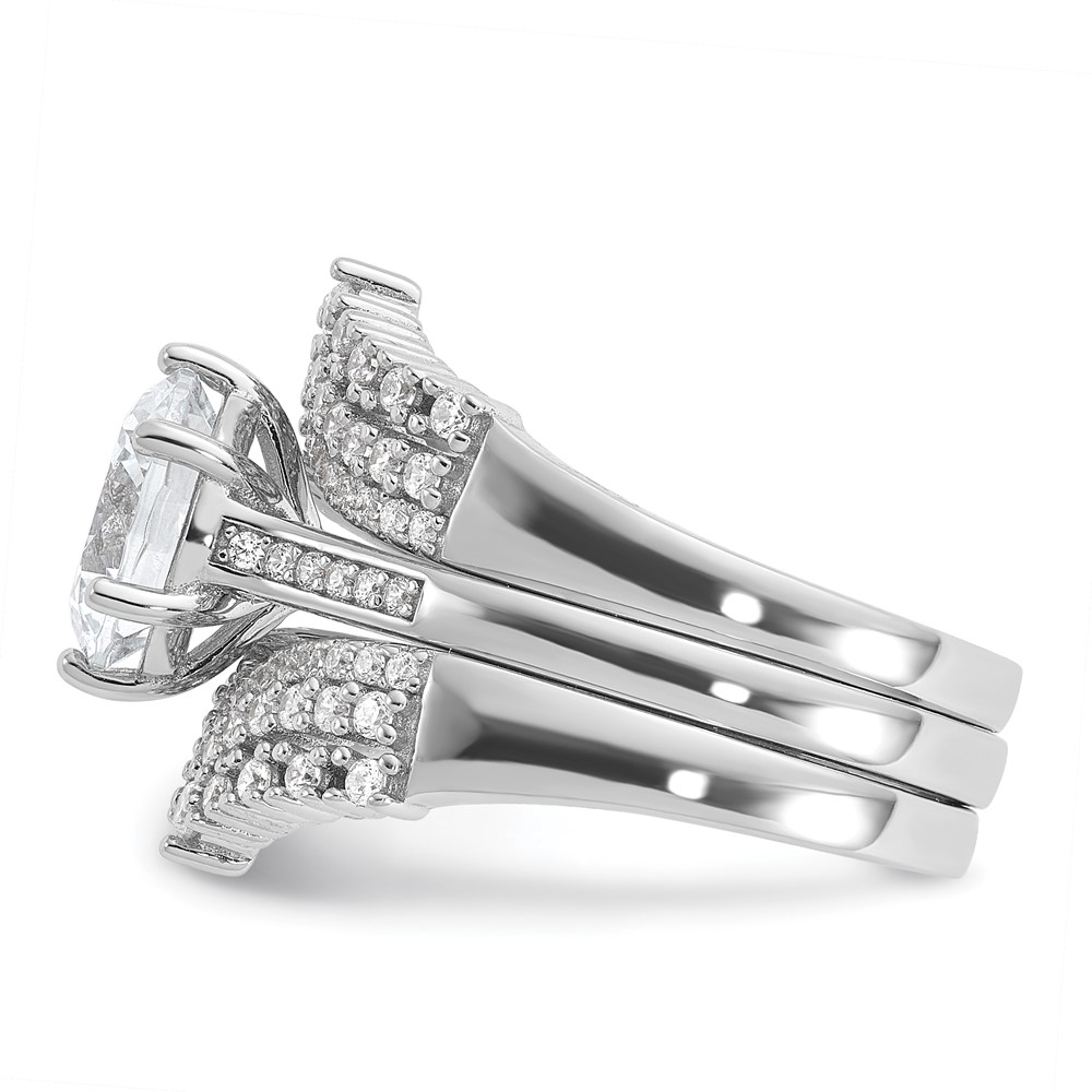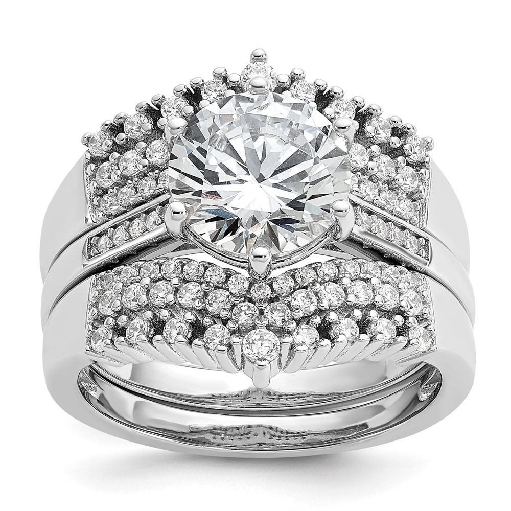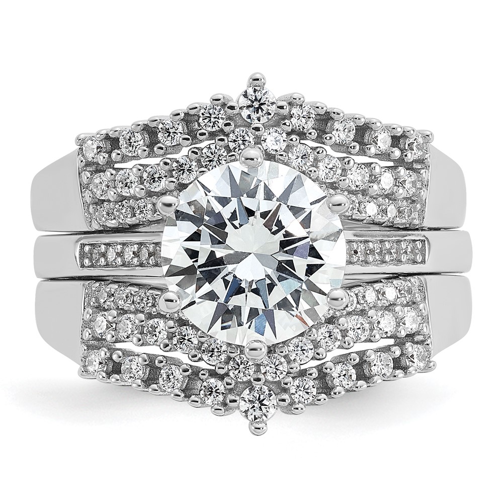 Cheryl M Sterling Silver Rhodium-plated Polished Fancy CZ with Two 3-Row Bands Ring Set
