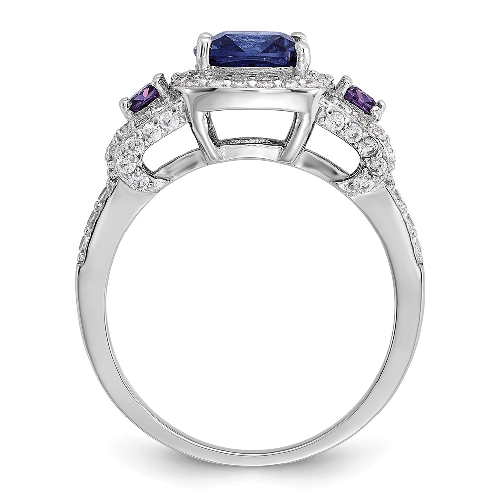 Cheryl M Sterling Silver Rhodium-plated Polished Fancy Blue Purple and White CZ Halo Ring
