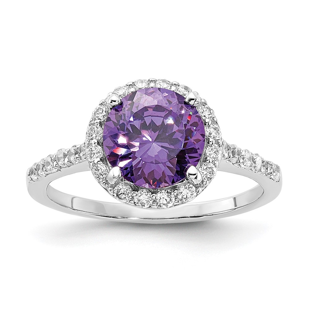 Cheryl M Sterling Silver Rhodium-plated Polished Purple and White CZ Round Halo Ring