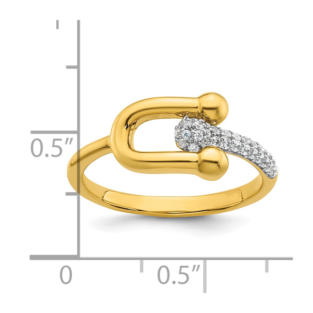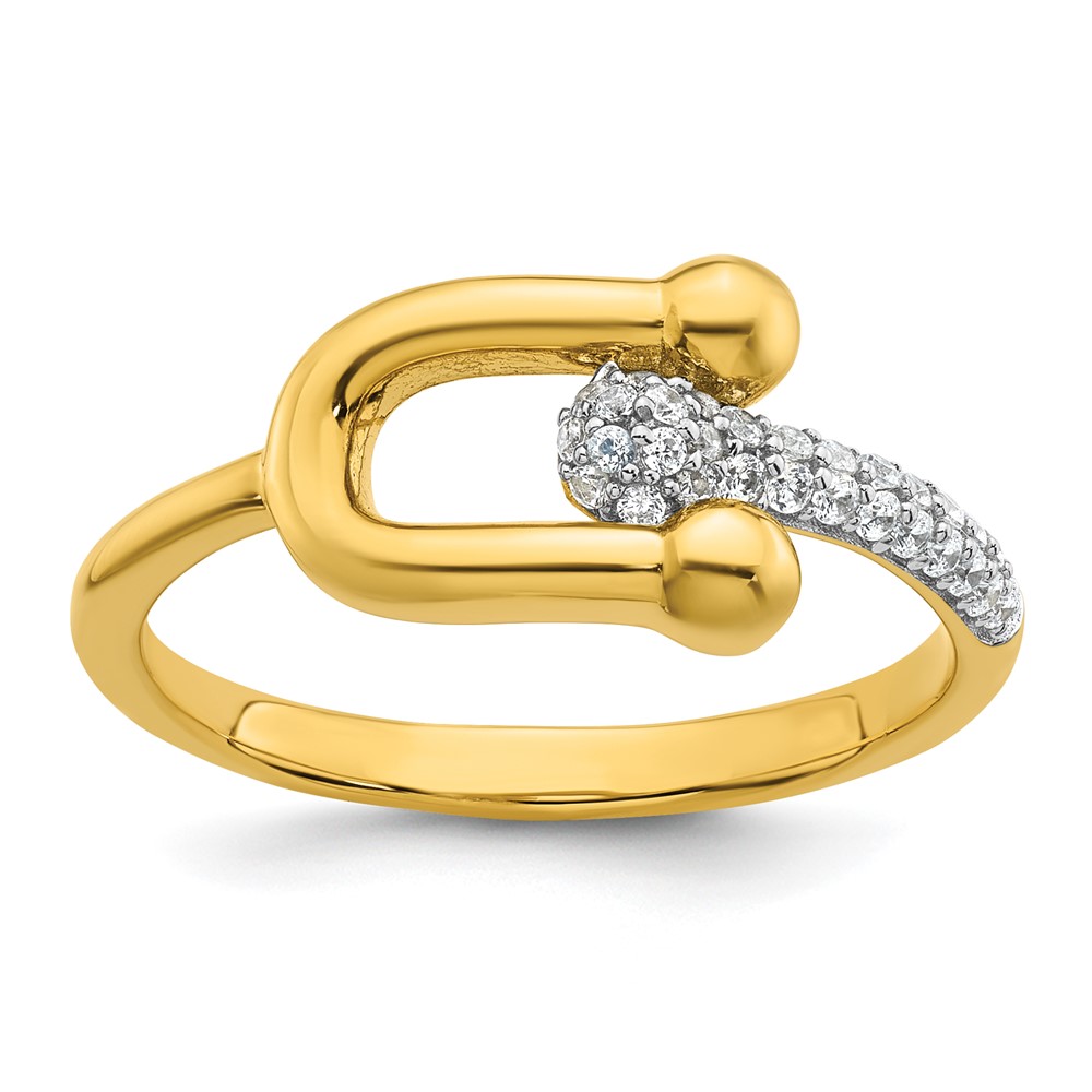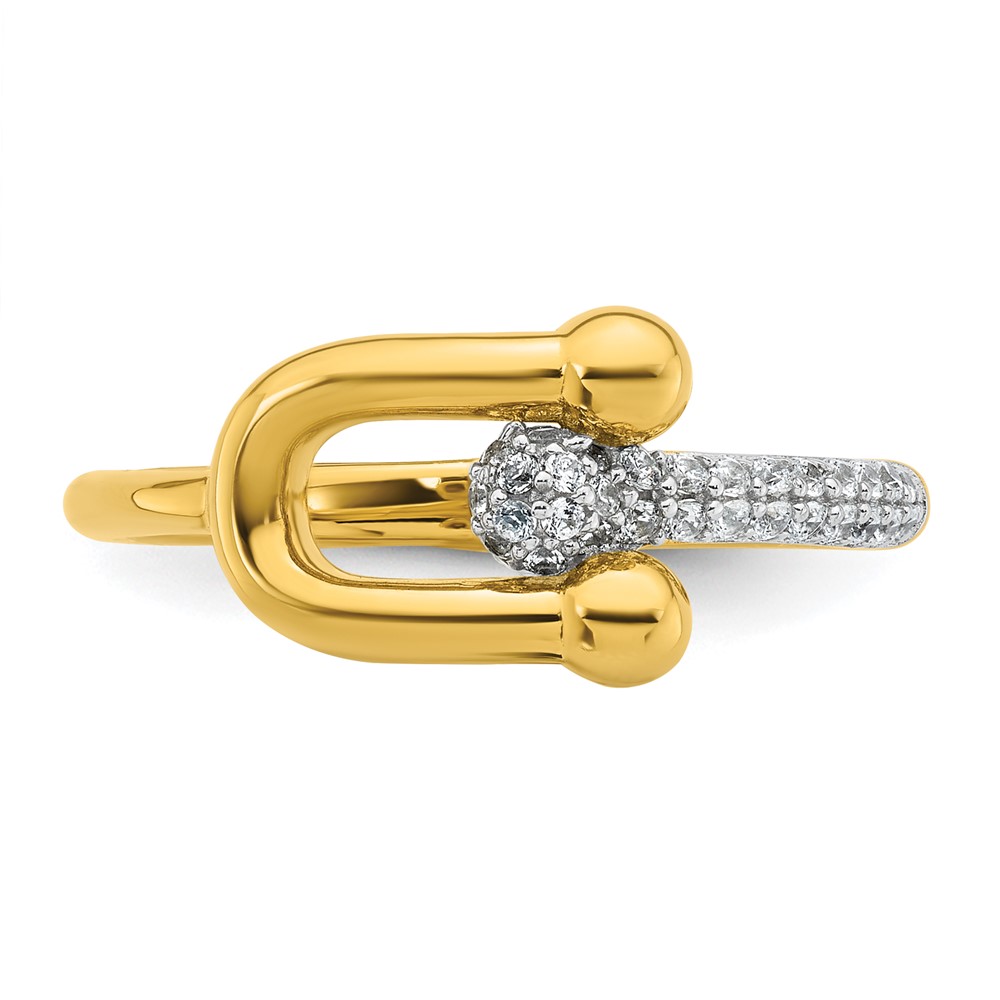 Sterling Silver Gold-tone CZ Polished And Textured Fancy Size 7 Ring