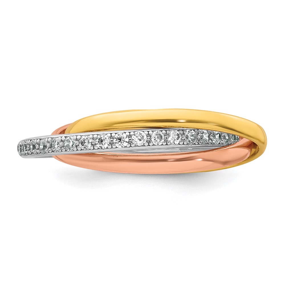 Sterling Silver Rhodium-plated Rose-tone and Gold-tone Polished CZ Intertwined Triple Band Size 6 Ring