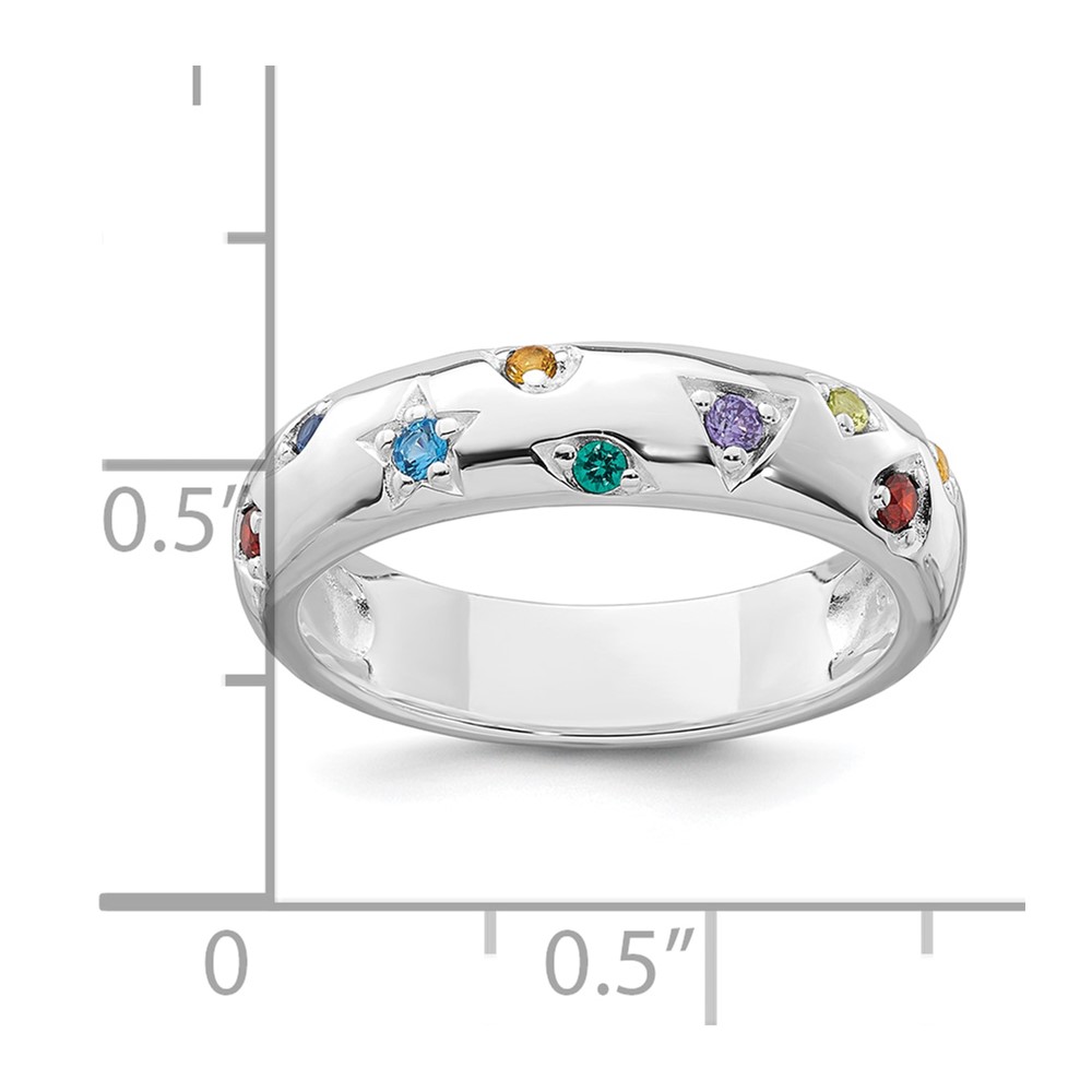 Sterling Silver Rhodium-plated Polished Multicolor CZ Geometric Shapes 5.00mm Band Size 7 Ring