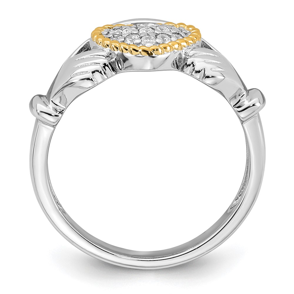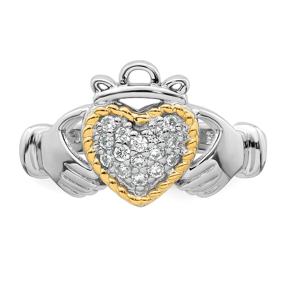 Sterling Silver Rhodium-plated with 14k Accent Polished CZ Size 7 Claddagh Ring