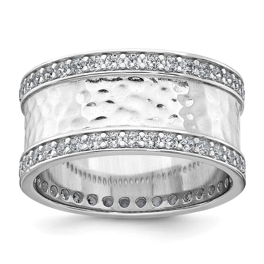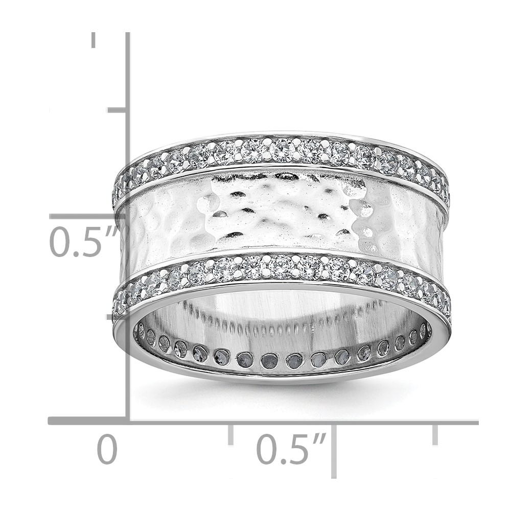 Sterling Silver Rhodium-plated CZ Polished And Hammered 9.5mm Band Size 7 Ring