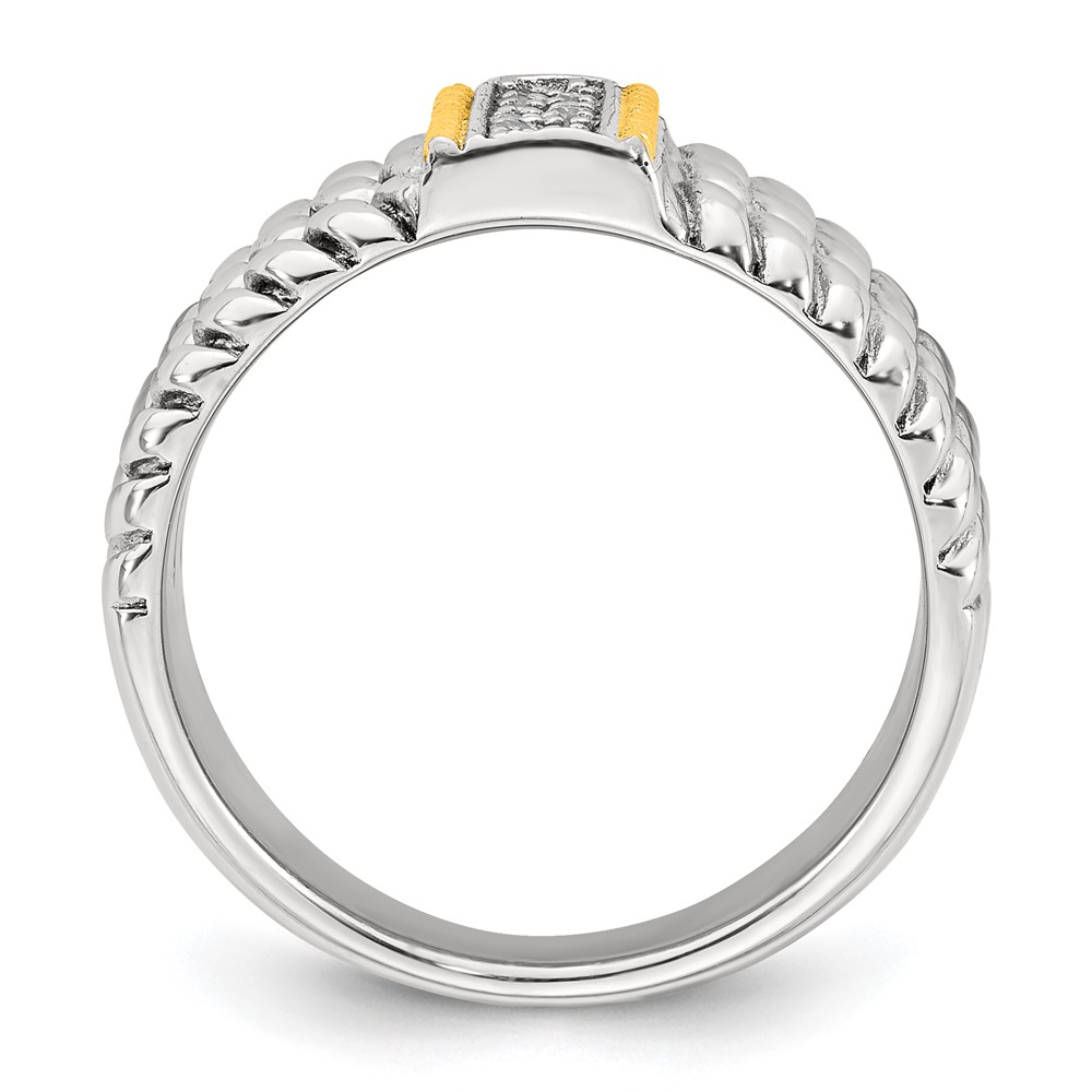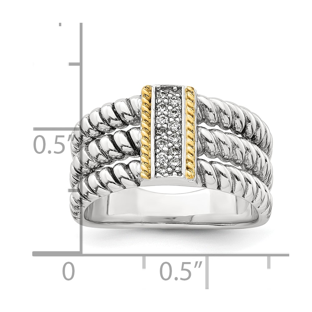 Sterling Silver with 14k Accent Antiqued Polished CZ Triple Twisted Ring