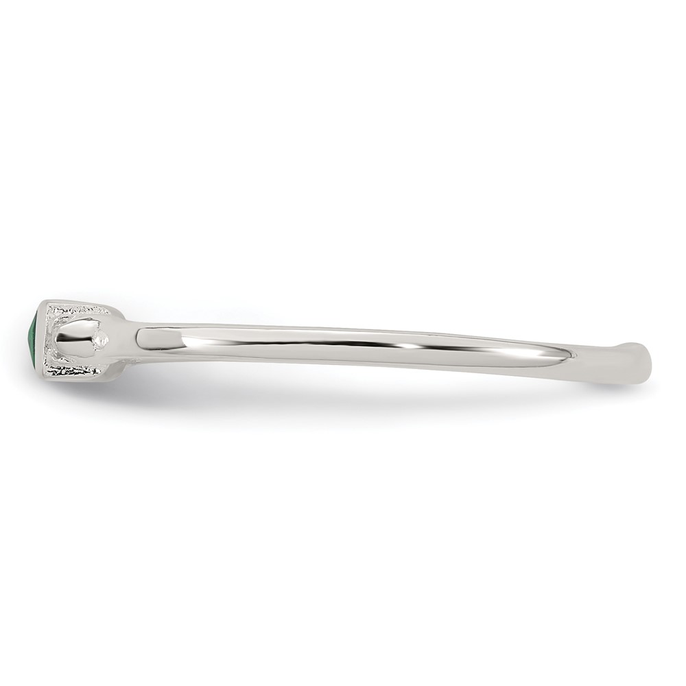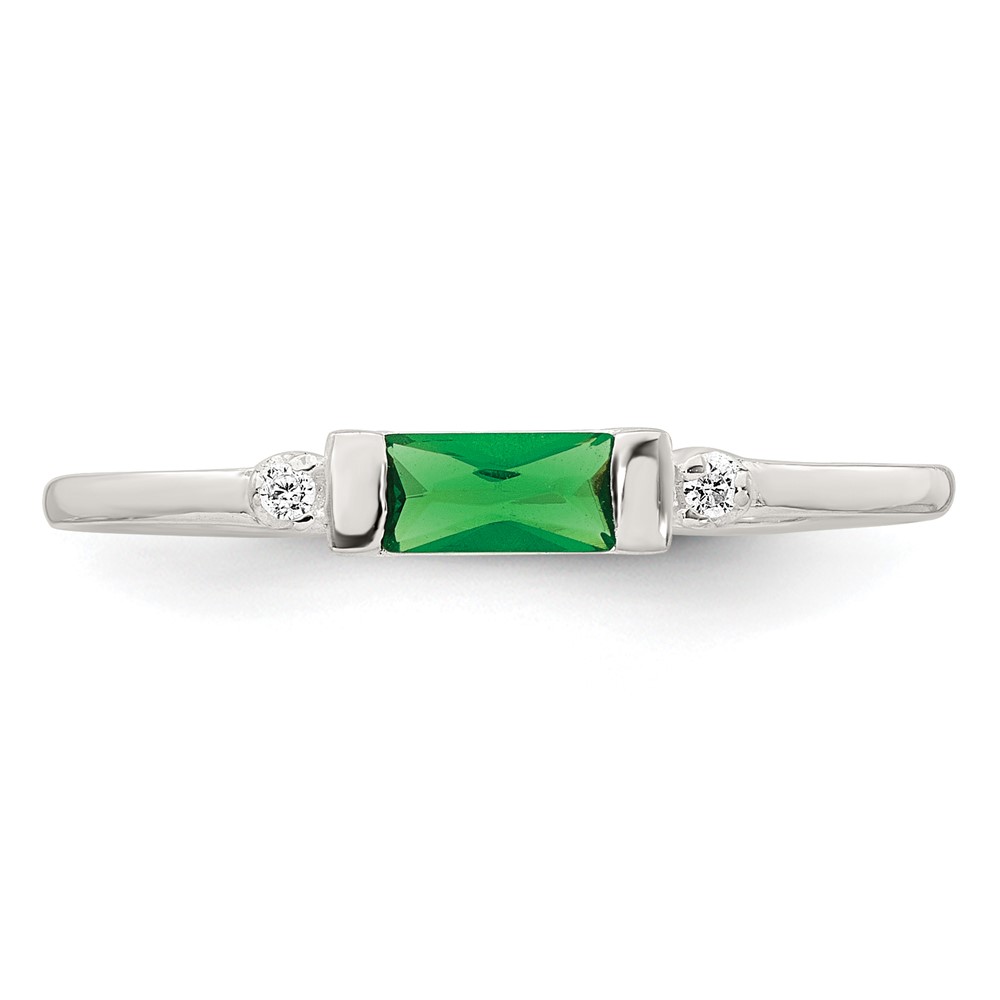 Sterling Silver Polished Green and White Rectangular CZ Size 7 Ring