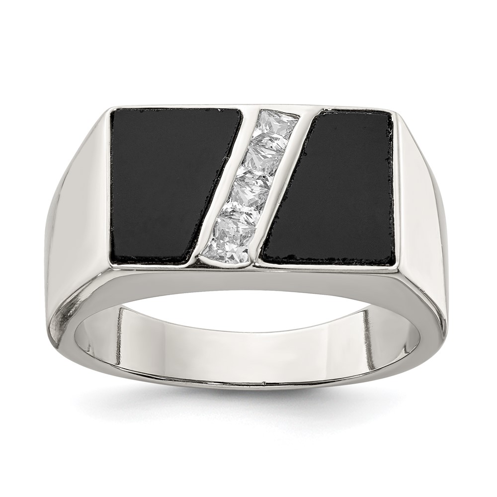 Sterling Silver Rhodium-plated Men's CZ and Onyx Ring