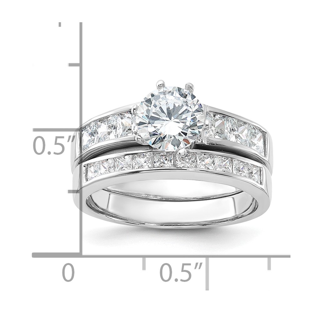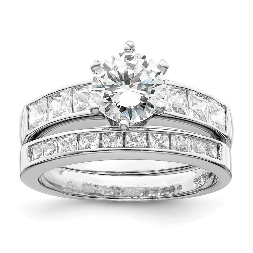 Sterling Silver Rhodium-plated CZ 2 Piece Wedding Ring Set