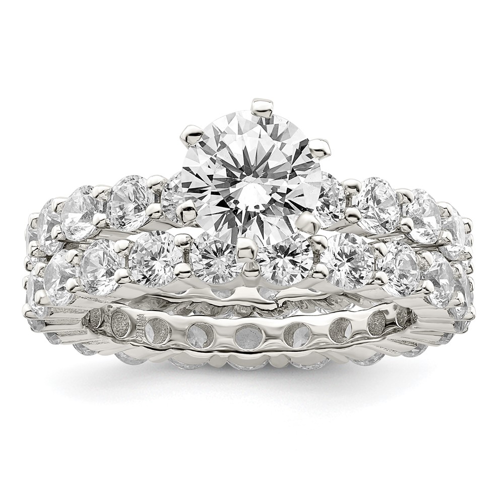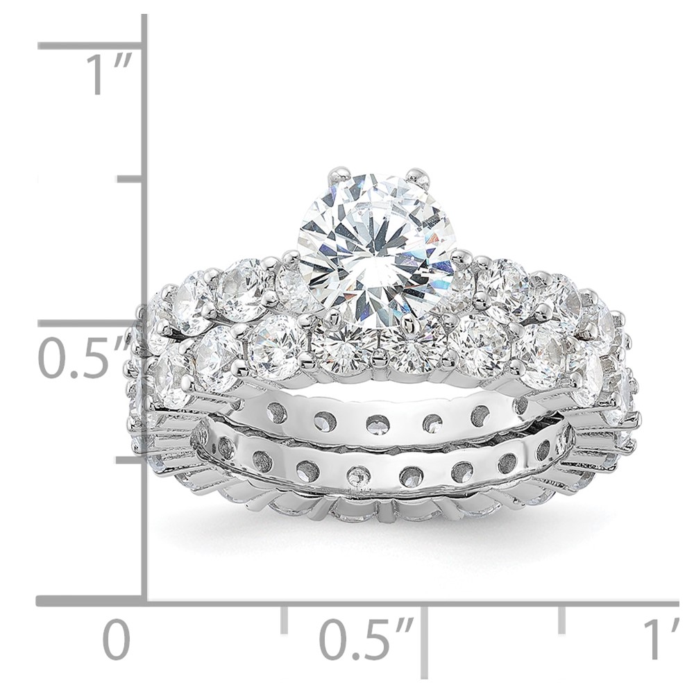 Sterling Silver Rhodium-plated CZ 2 Piece Wedding Set Ring