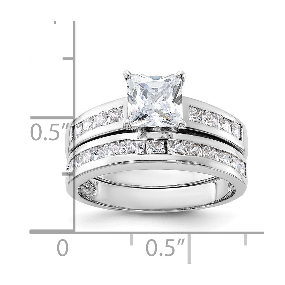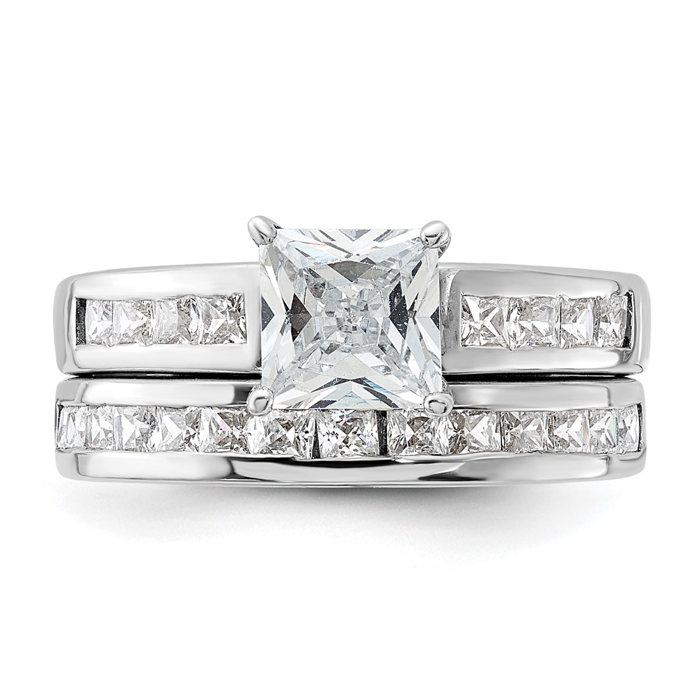 Sterling Silver Rhodium-plated 2-Piece CZ Size 6 Wedding Set Ring