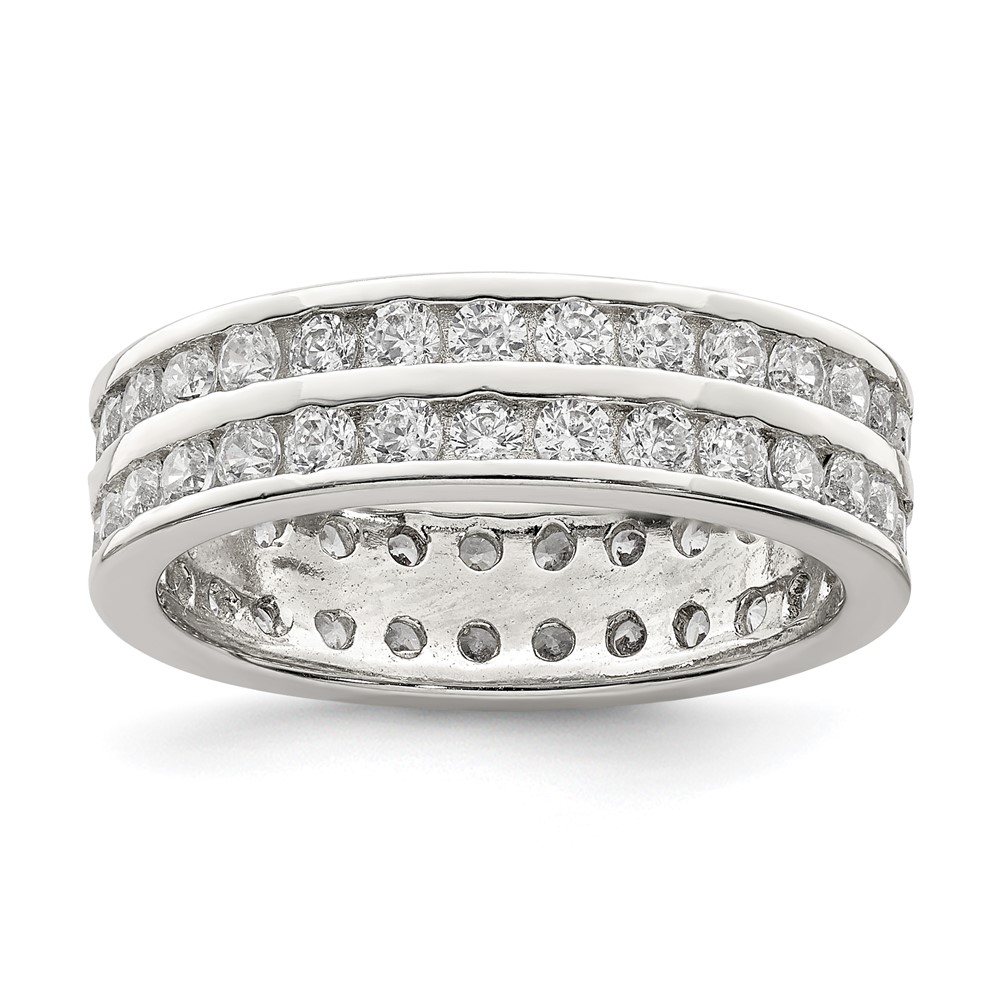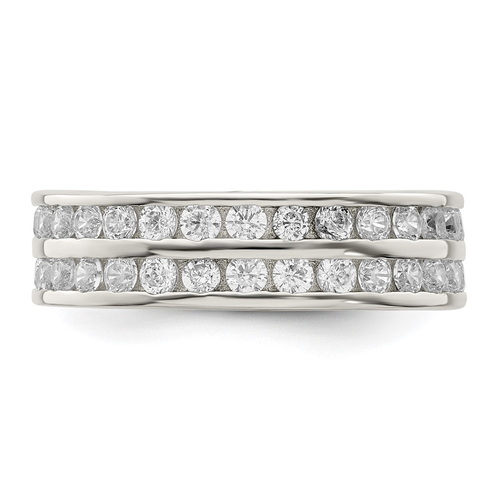 Sterling Silver Rhodium-plated Double Row CZ Band