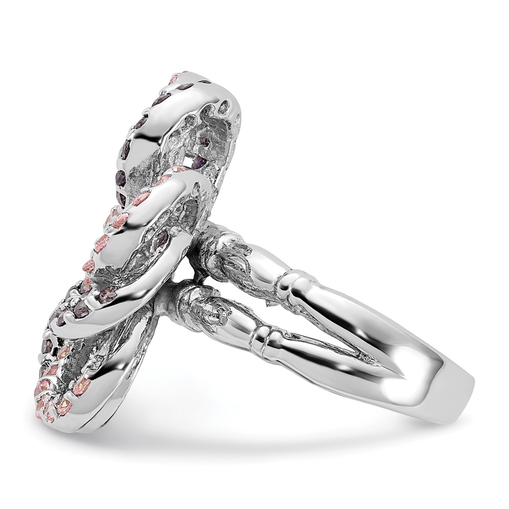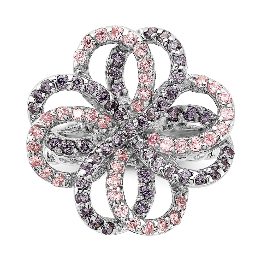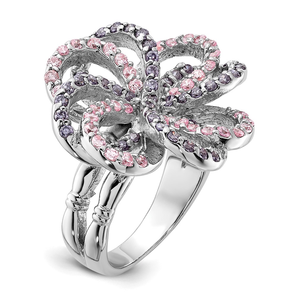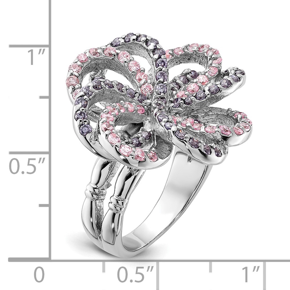 Sterling Silver Polished Pink & Purple CZ Flower Ring