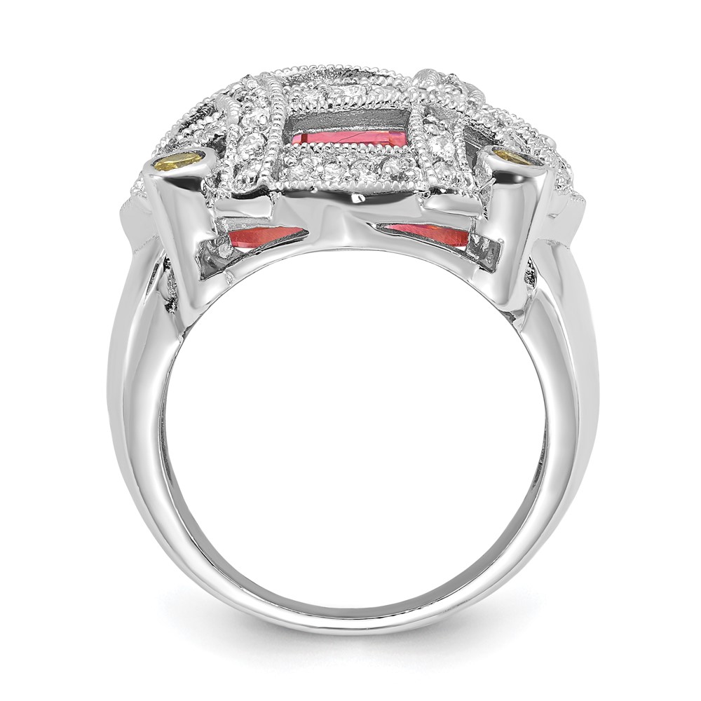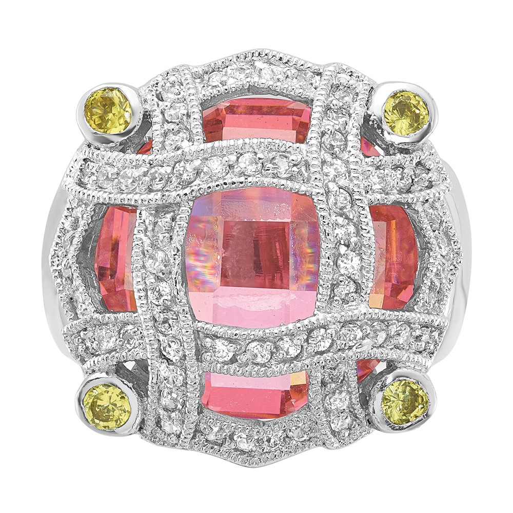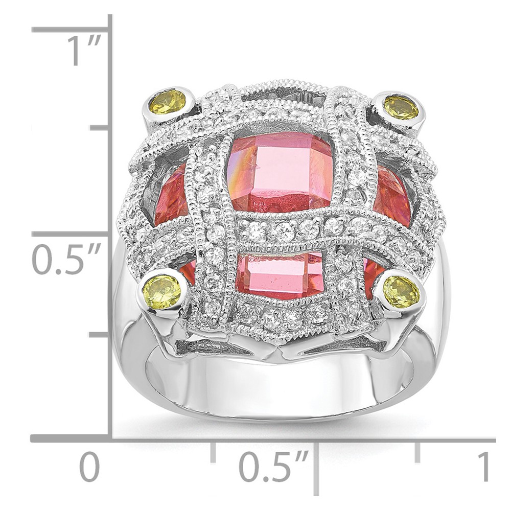 Sterling Silver Pink Glass & CZ Ring
