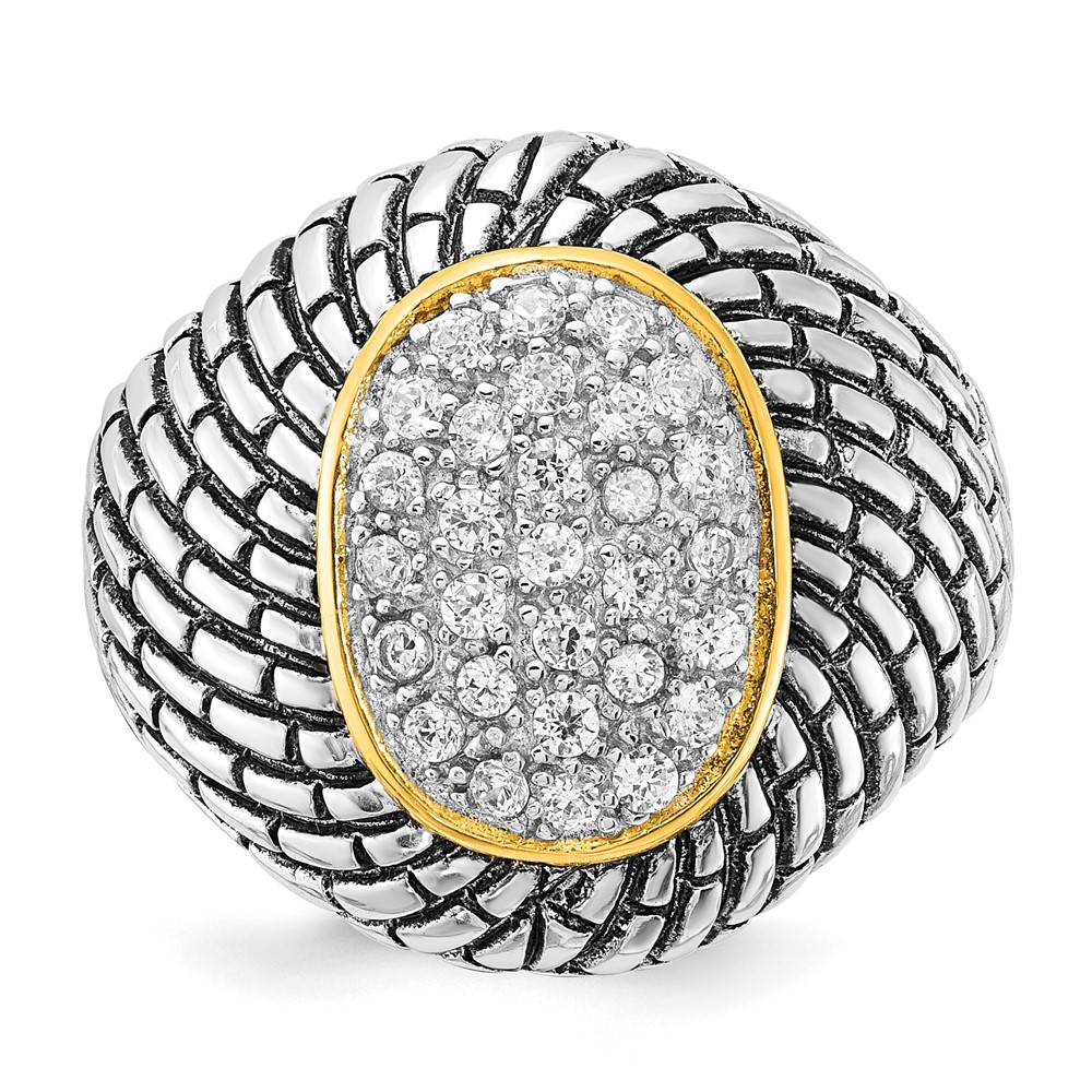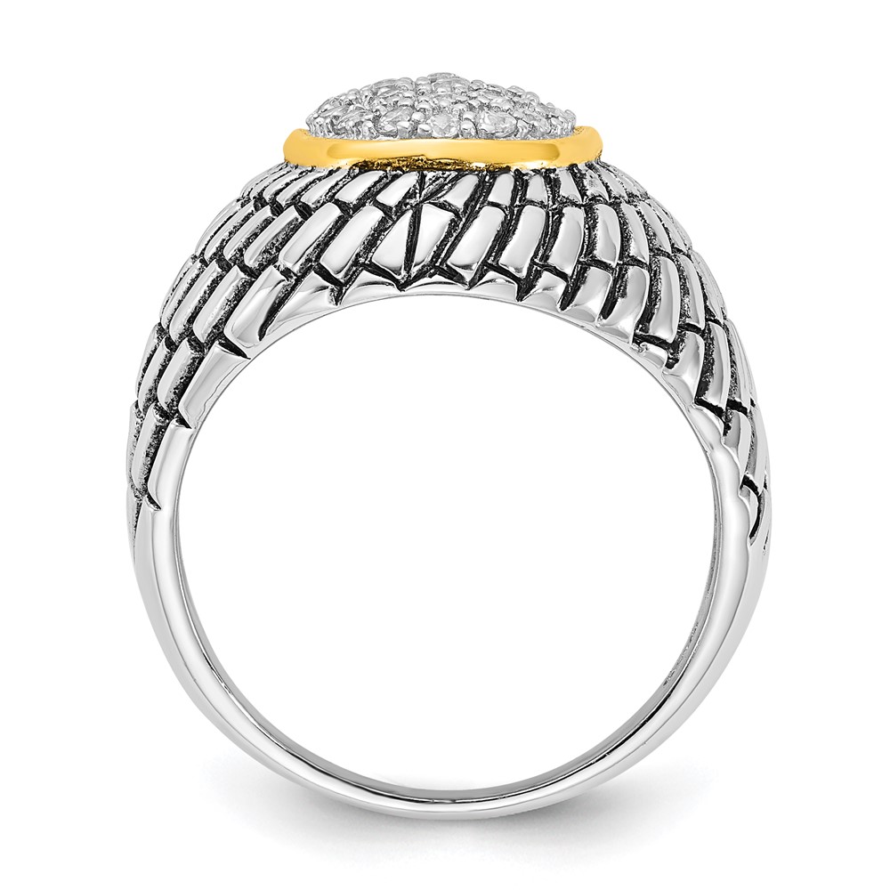 Sterling Silver Gold-tone Vermeil Polished & Antiqued Oval CZ Ring