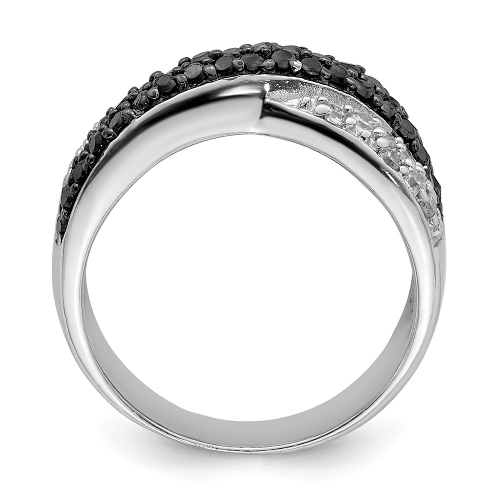 Sterling Silver Rhodium Black & White CZ Crossed Ring