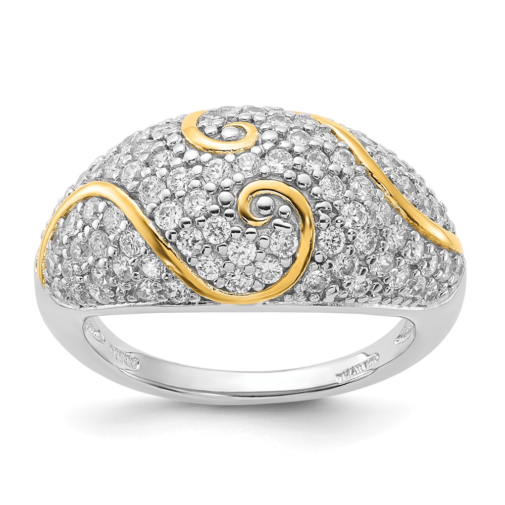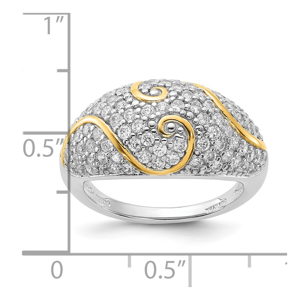 Sterling Silver Gold-plated CZ Swirl Ring